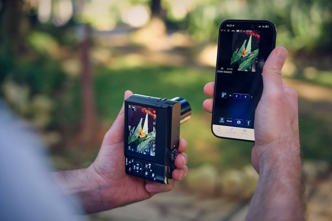 Nowy uchylny ekran LCD o rozdzielczości 1,84 mln punktów umożliwia wygodne wykonywanie selfie, vlogowanie czy fotografowanie z nietypowych perspektyw. Ładowanie przez port USB typu C zapewnia wygodę w podróży. Wbudowana łączność Wi-Fi 2.4 GHz oraz Bluetooth 5.0 umożliwia szybkie udostępnianie zdjęć i filmów – a dedykowany przycisk „Send Image” pozwala na natychmiastowy przesył plików do smartfona.