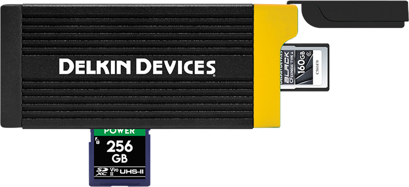 Czytnik kart pamięci CFexpress typu A i SD UHS-II z interfejsem USB 3.2 marki Delkin Devices łączy w sobie kompaktowe wymiary oraz zdolność błyskawicznego transferu danych. Ten czytnik został zaprojektowany specjalnie z myślą o osobach, które lubią podróżować z niewielkim bagażem, a jednocześnie potrzebują szybko przenosić dane z kart pamięci CFexpress typu A & SD XC UHS- II, które są używane w branży foto/wideo.