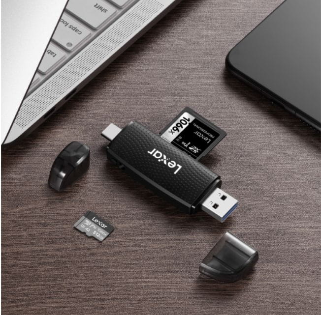 - Stylowa i przenośna konstrukcja Czytnik Lexar Dual-Slot USB-A/C ma kompaktową i przenośną konstrukcję, która z łatwością mieści się w każdej kieszeni lub torbie. A dla dodatkowej przenośności, czytnik posiada pętlę na breloczek do kluczy, którą można przymocować do dowolnego plecaka lub breloczka do kluczy.