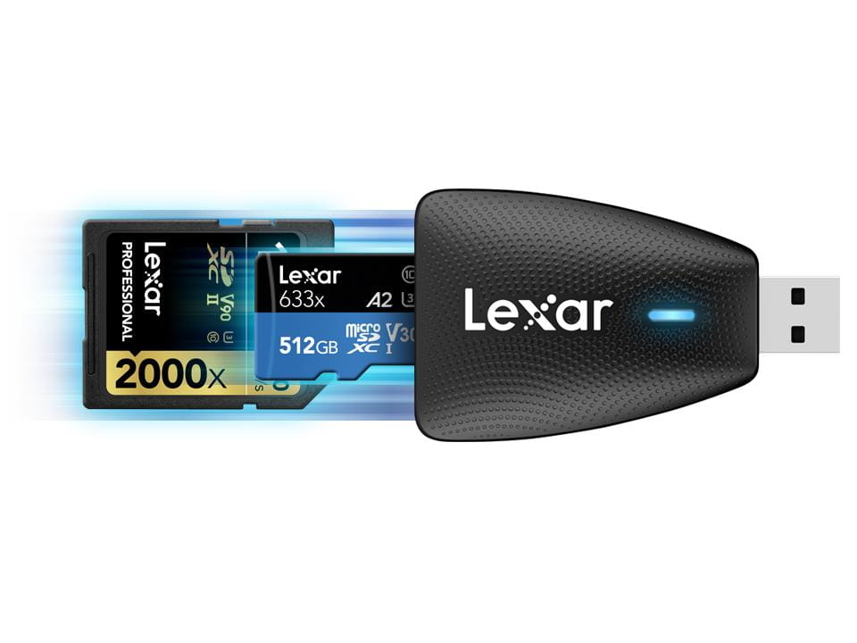 Czytnik kart Lexar Multi-Card 2-w-USB USB 3.1 oferuje prędkości transferu do 312 MB / s (odczytuje do 5 razy szybciej niż USB 2.0) 1 dla SD ™ i microSD ™. Jest także wstecznie kompatybilny z UHS-I (do 170 MB / s) 1, co znacznie poprawia przepływ pracy.
