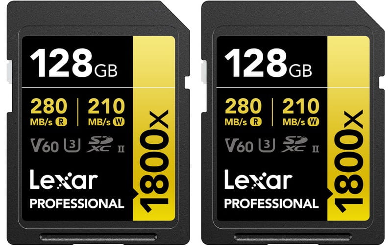 Dwie karty pamięci Lexar SDXC Gold 1800x 128GB (R280/W210)