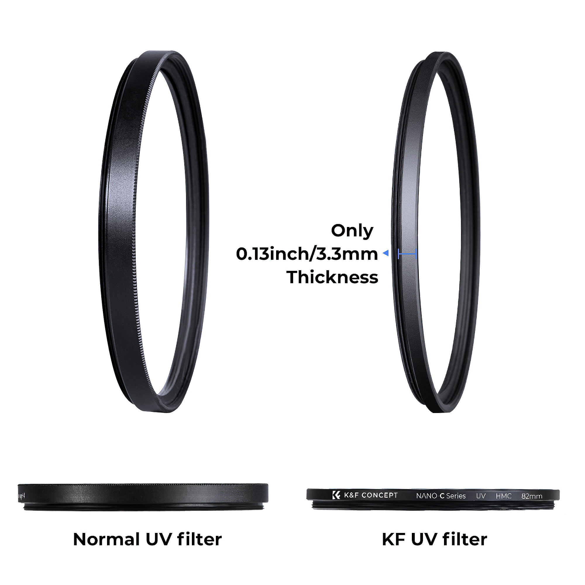 Supercienka ramka filtra UV K&F Concept Nano-C HMC UV ma zaledwie 3,3 mm grubości. Dzięki temu nie musisz martwić się o efekt winietowania, nawet wtedy, gdy korzystasz z długich teleobiektywów, oferujących duże ogniskowe. Twoje kadry pozostaną klarowne i wyraźne, zachowując pełną przejrzystość –zarówno przy zbliżeniach, jak i bardzo szerokich kadrach.