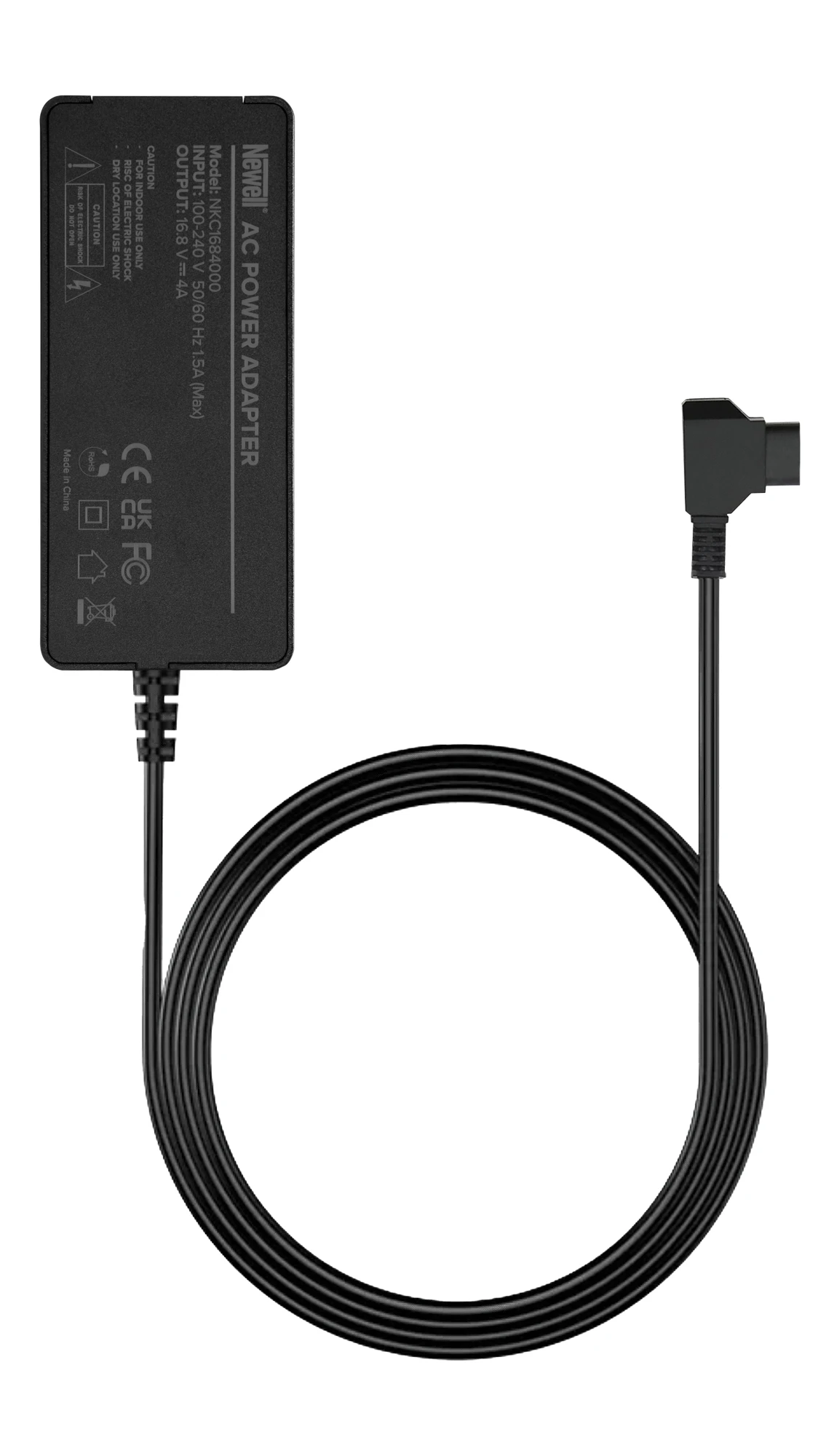 Ładowarka Newell D-Tap 16,8 V 4 A, którą z łatwością podłączysz do gniazdka elektrycznego, zapewni Ci szybkie i wygodne uzupełnianie mocy w akumulatorach V-mount. Łączna długość kabli wynosi tu niemal 2 metrów, co pozwoli zadbać o ergonomiczne stanowisko pracy. Prąd wyjściowy, jaki oferuje ładowarka to 16,8 V / 4 A.
