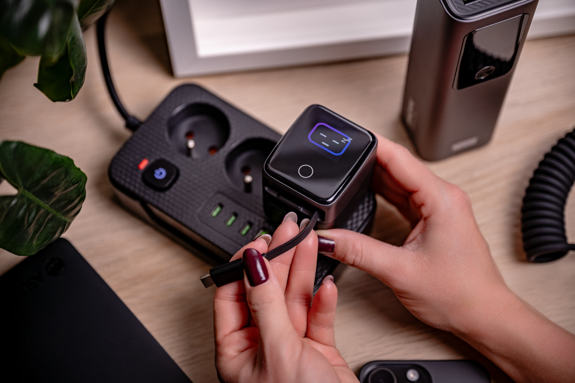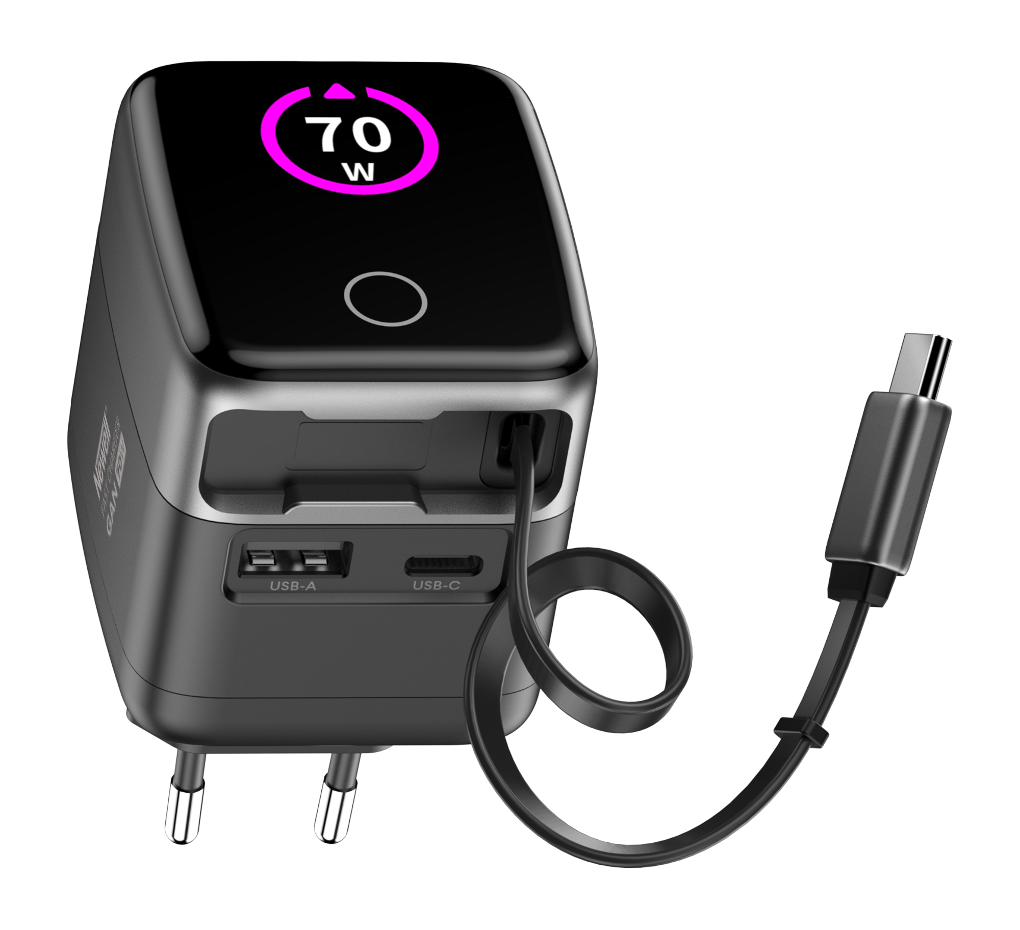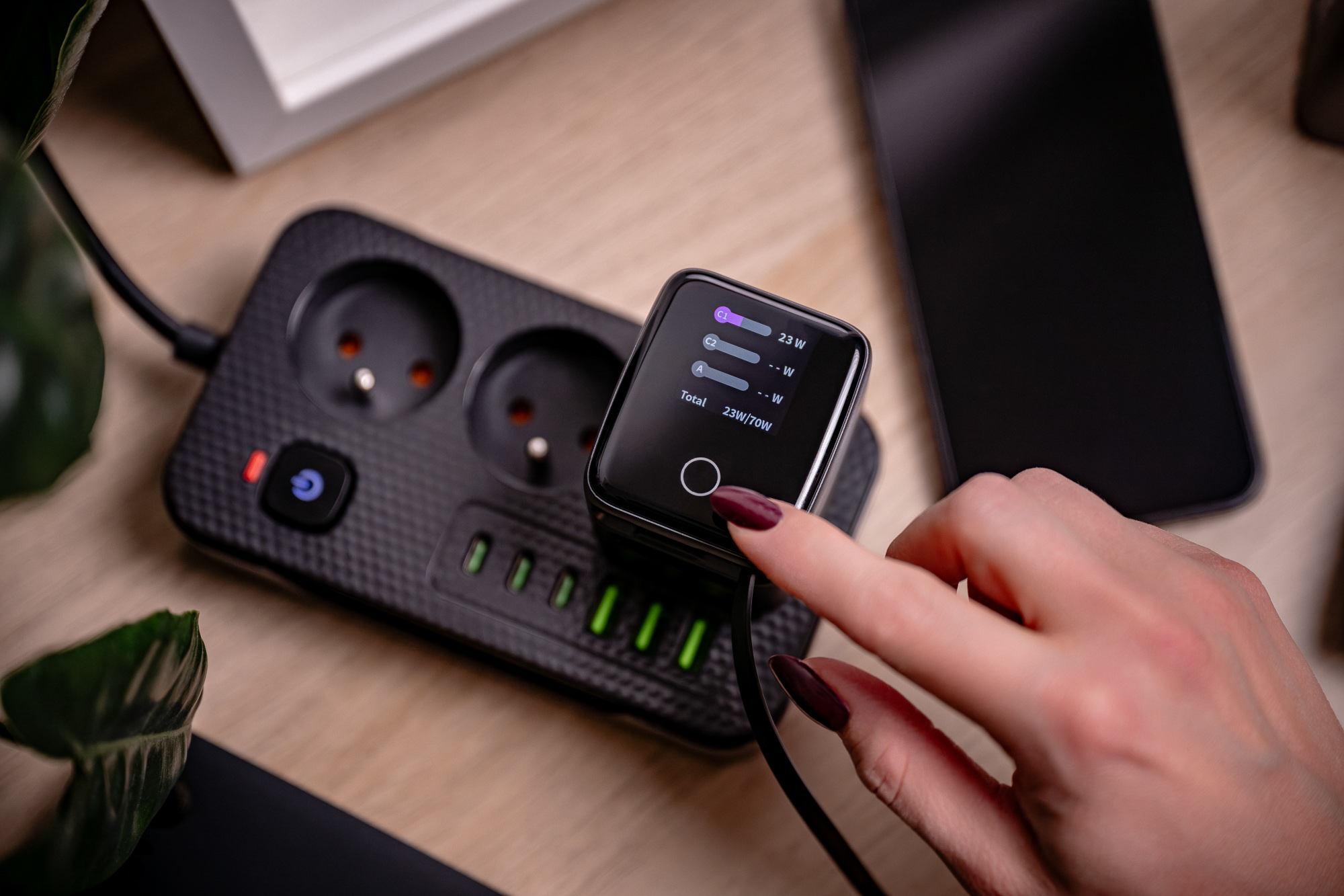Wielozadaniowa ładowarka sieciowa Newell GaN 70 W TFT - EU to prawdziwa oszczędność miejsca i czasu. Port USB-C, zintegrowany kabel USB-C i jedno gniazdo USB-A pozwalają na jednoczesne ładowanie nawet trzech różnych urządzeń. Niezależnie od tego, czy podłączasz do niej laptopa, smartfon i słuchawki, czy tablet i powerbank – ładowarka automatycznie dostosuje moc, aby każde urządzenie otrzymało optymalny zastrzyk energii.