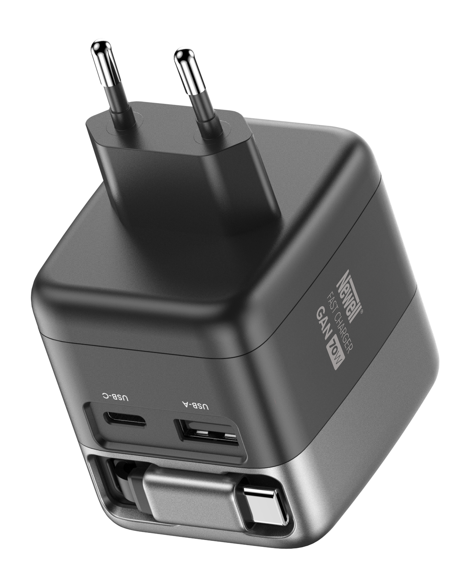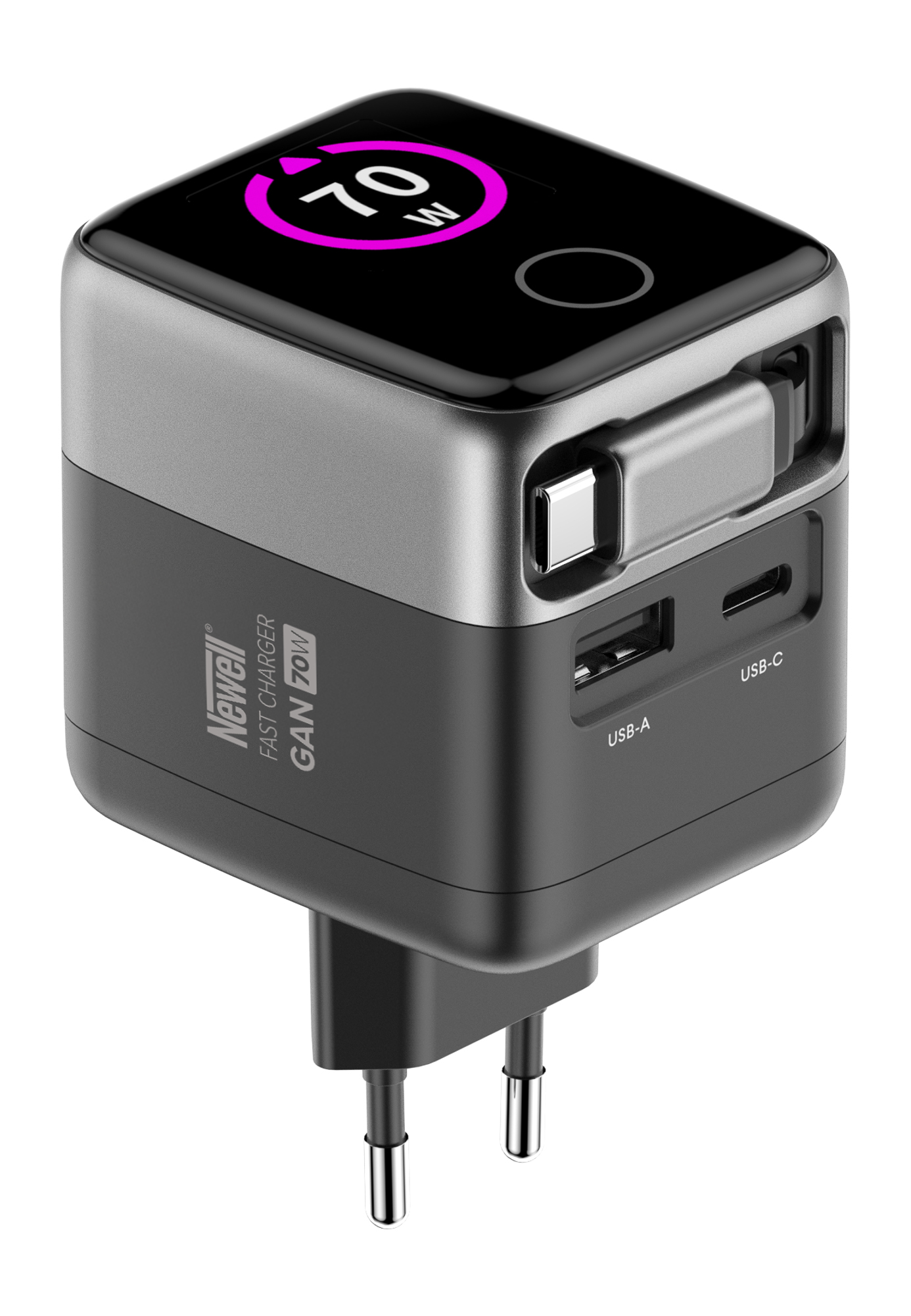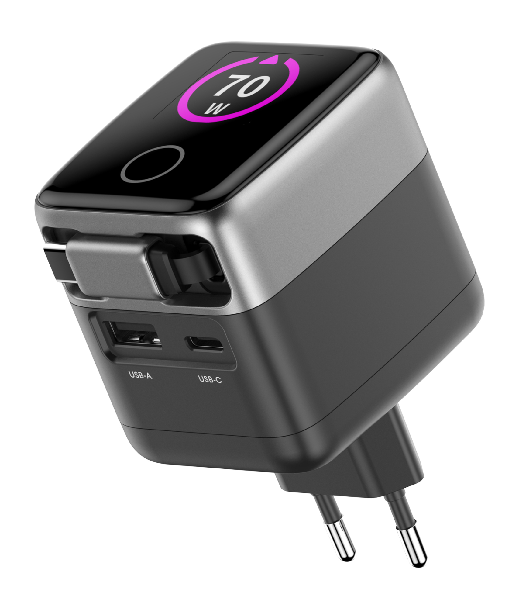 Wielozadaniowa ładowarka sieciowa Newell GaN 70 W TFT - EU to prawdziwa oszczędność miejsca i czasu. Port USB-C, zintegrowany kabel USB-C i jedno gniazdo USB-A pozwalają na jednoczesne ładowanie nawet trzech różnych urządzeń. Niezależnie od tego, czy podłączasz do niej laptopa, smartfon i słuchawki, czy tablet i powerbank – ładowarka automatycznie dostosuje moc, aby każde urządzenie otrzymało optymalny zastrzyk energii.