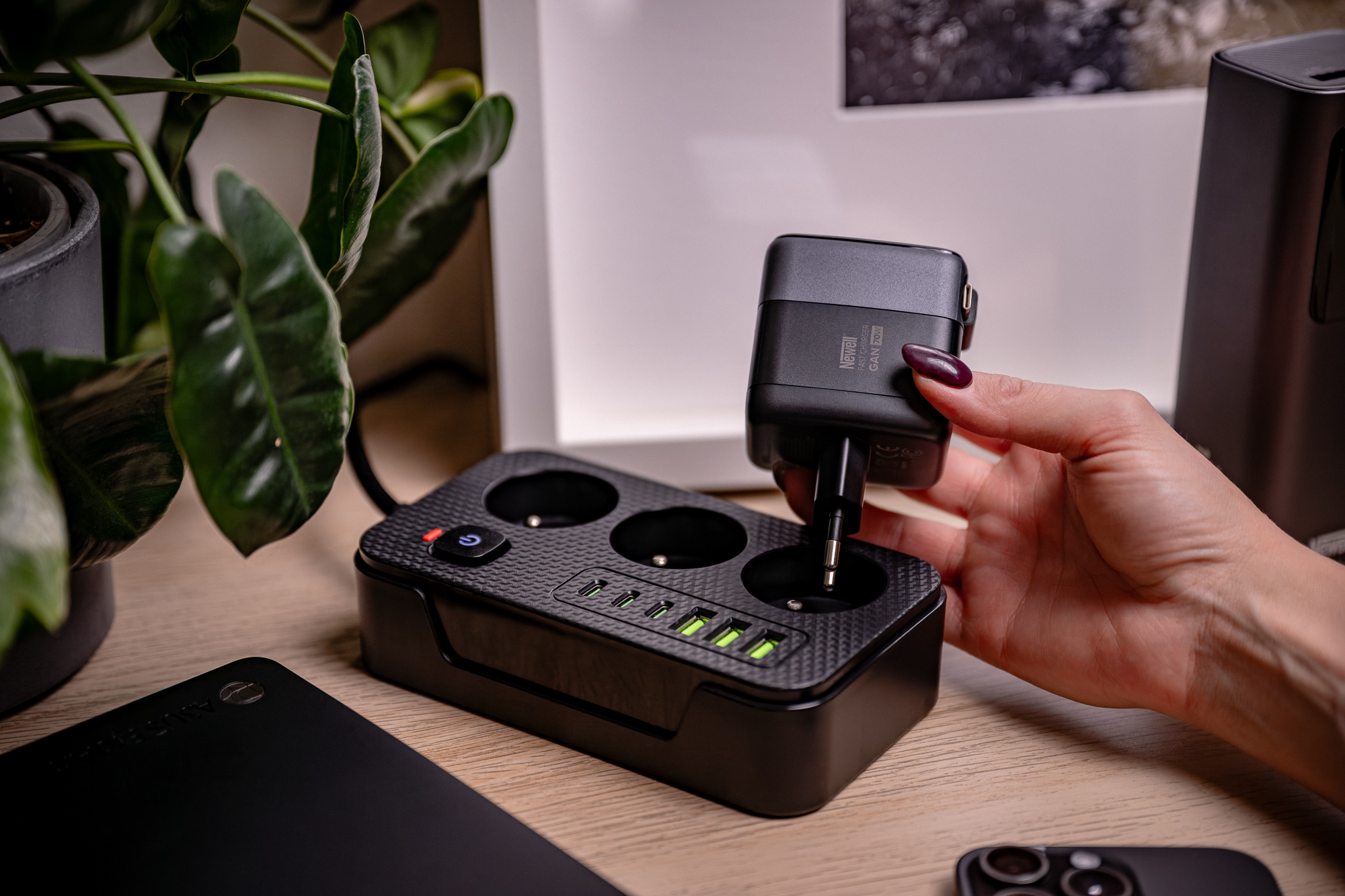 - nowoczesna technologia GaN – większa wydajność i mniejsze nagrzewanie