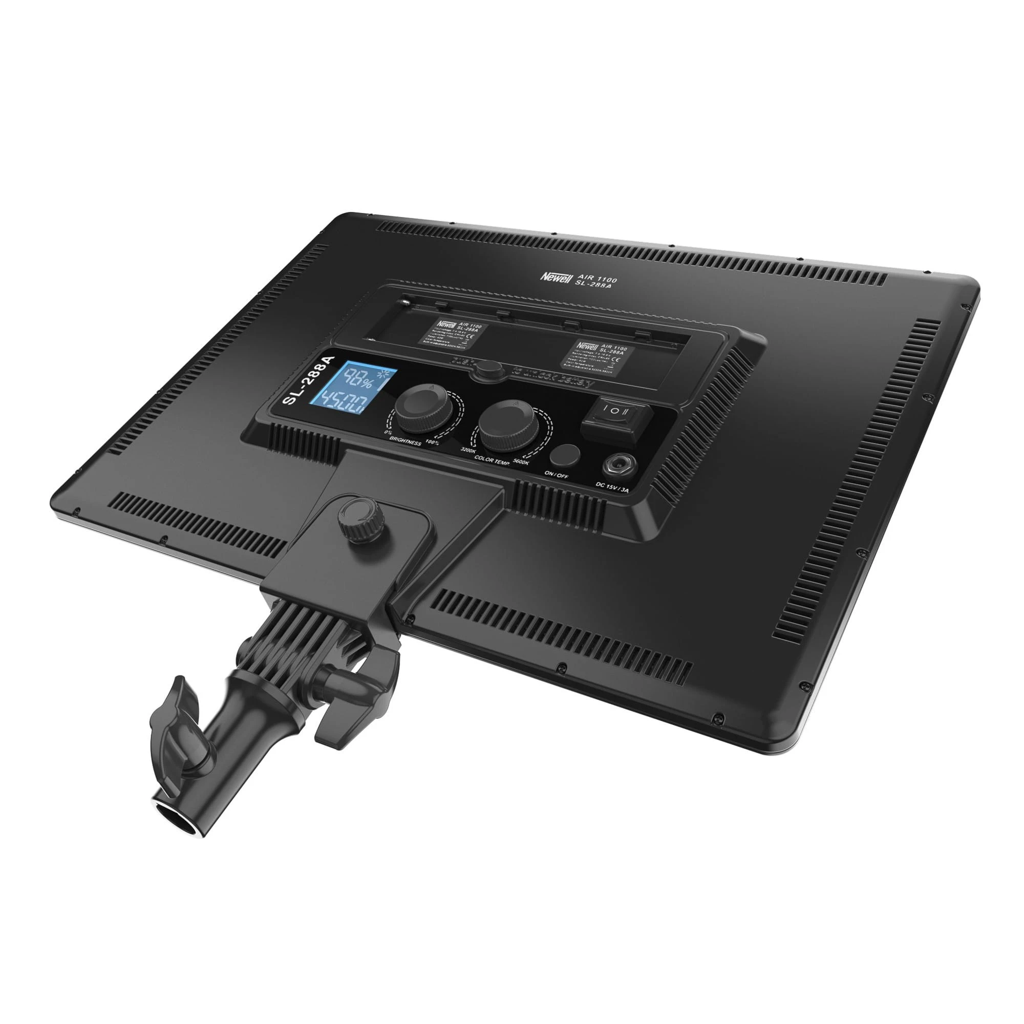 Newell Air 1100 posiada wbudowany dyfuzor, dzięki czemu uzyskujemy przyjemne, miękkie światło, bez konieczności zastosowania dodatkowych akcesoriów. Moc światła i temperaturę barwową można regulować płynnie za pomocą pokręteł, a kontrolę parametrów ułatwia wbudowany wyświetlacz.