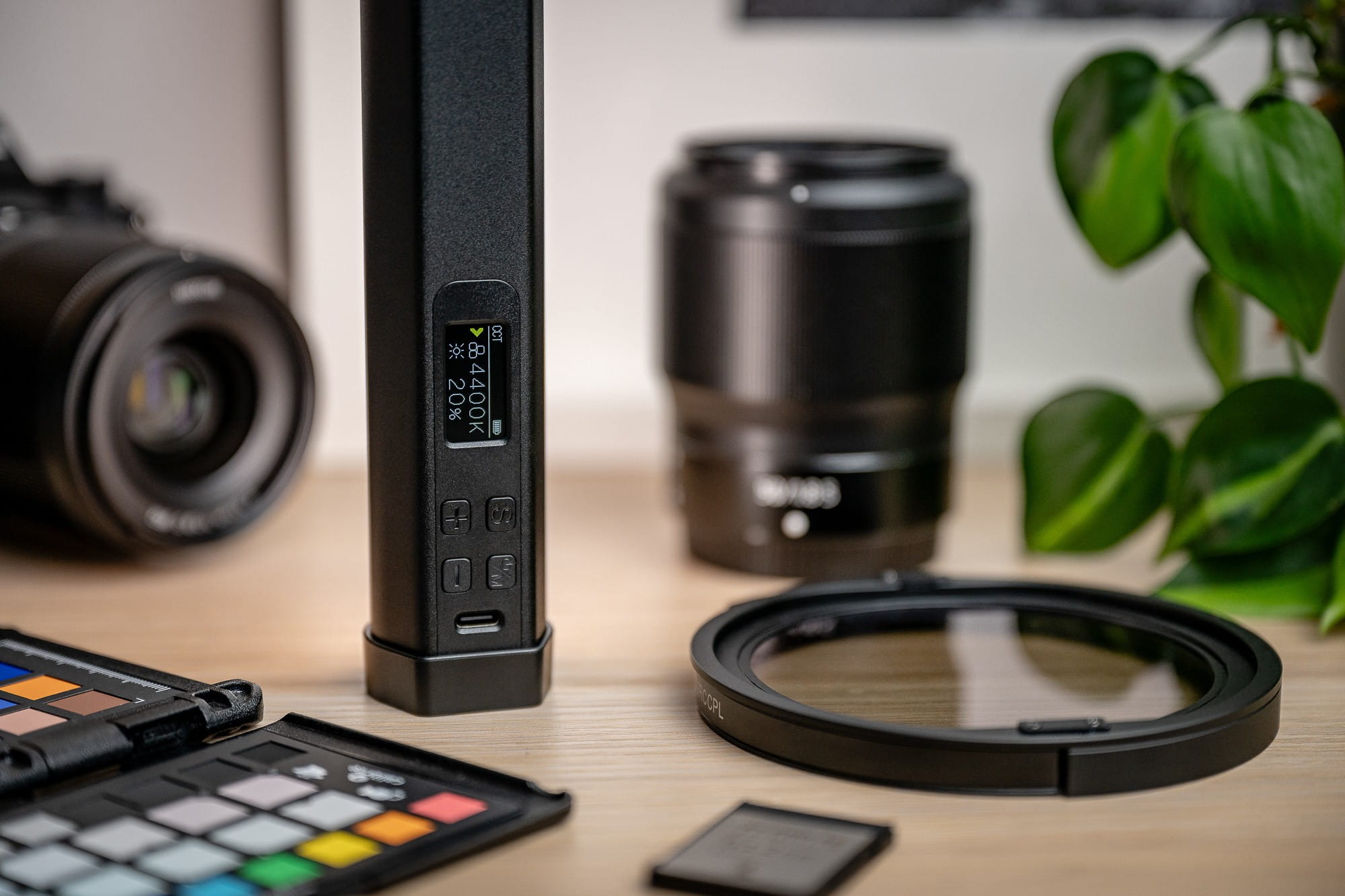 Wewnątrz obudowy podłużnego panelu LED ukryto akumulator o pojemności 2500 mAh. Zapewnia on do 100 minut pracy z wykorzystaniem maksymalnej jasności światła i najwyższej dostępnej temperatury barwowej. Gdy urządzenie się rozładuje, po prostu podłącz je do ładowarki lub power banku, przy pomocy dołączonego do zestawu kabla USB-C.
