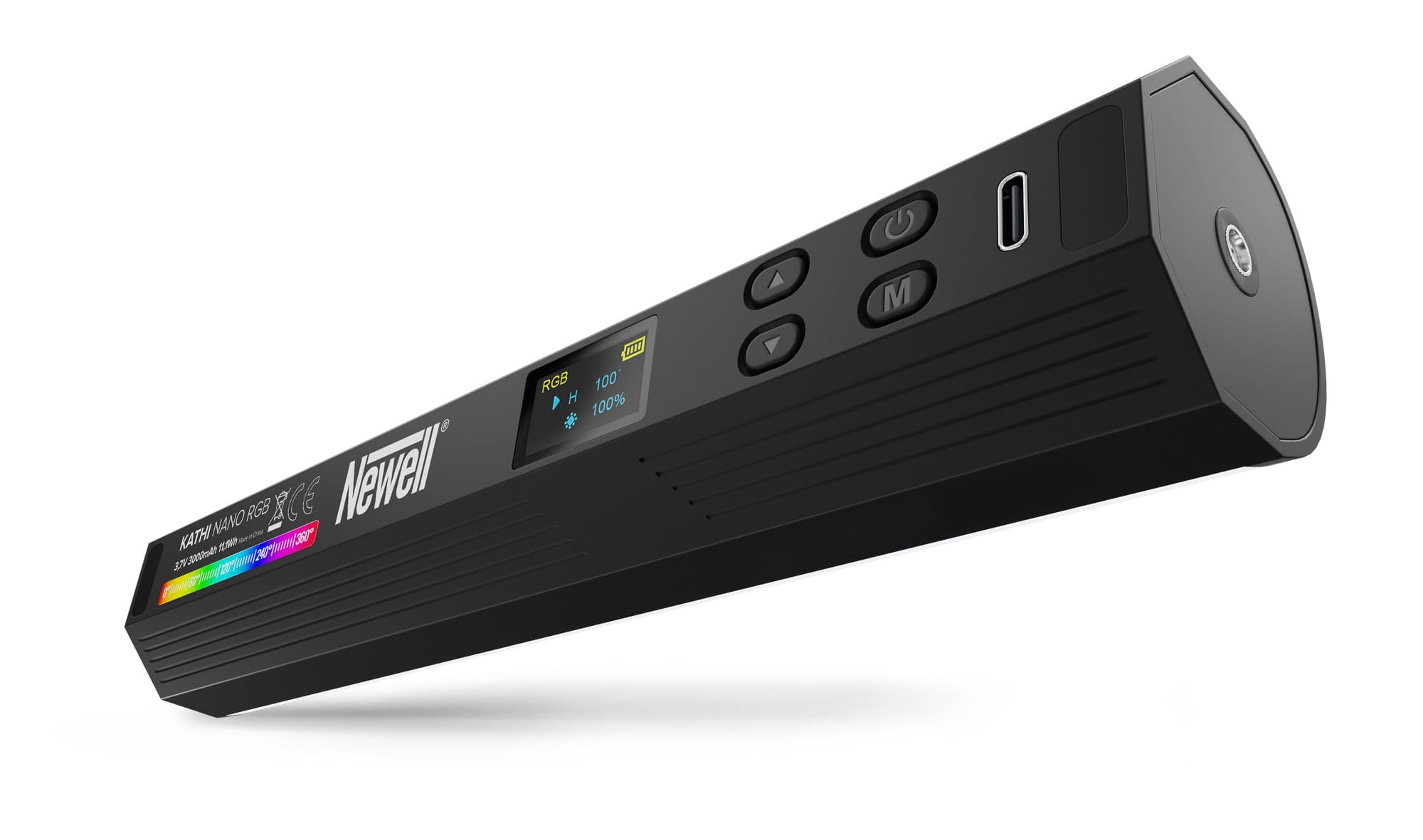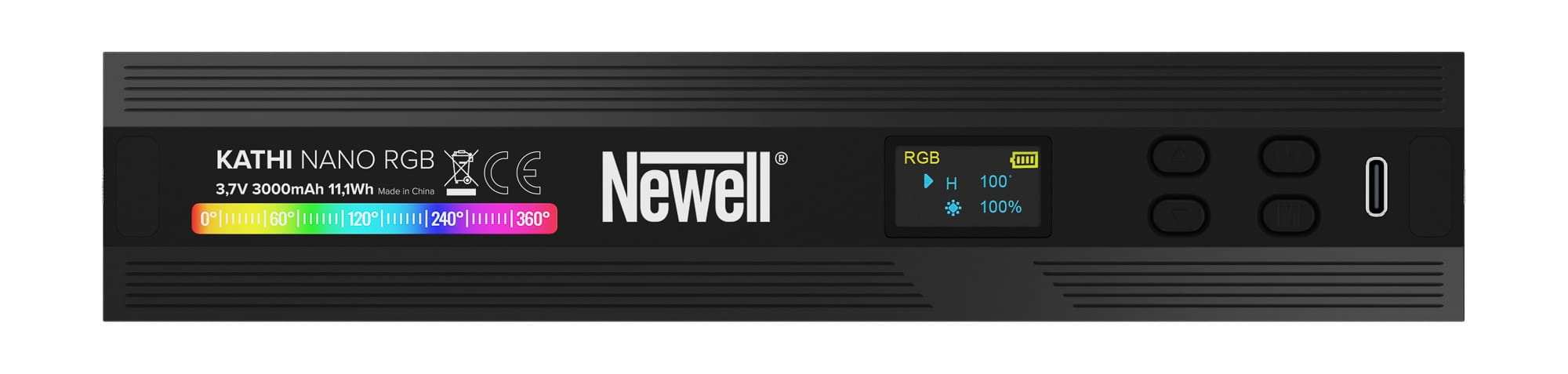 Lekka obudowa urządzenia zapewnia odpowiedni komfort i wygodę pracy ze światłem. Dwa żeńskie gwinty 1/4" ułatwiają montaż na statywie, a mocne magnesy umożliwiają "przyklejanie" do metalowych powierzchni. Sześciokątna obudowa pozwala ustawić lampę Newell RGB Kathi Nano na płaskiej powierzchni w pięciu różnych pozycjach.