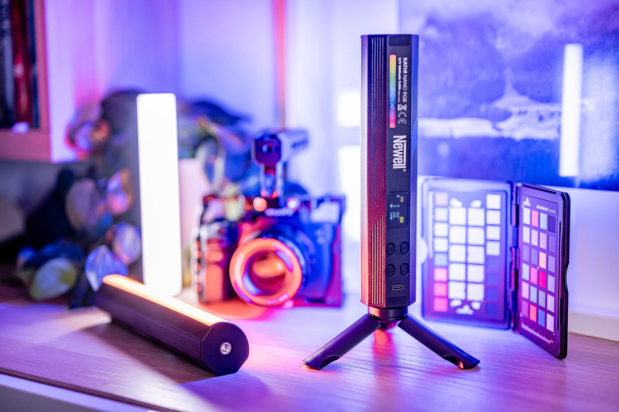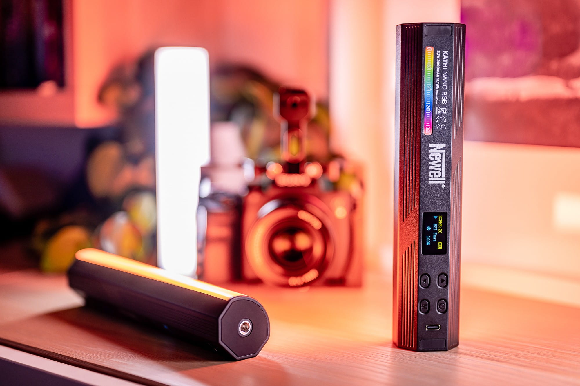 Newell RGB Kathi Nano to najmniejszy przedstawiciel rodziny lamp Kathi. Będzie świetnym wyborem dla osób zajmujących się fotografią produktową i portretową, a także dla twórców vlogów i teledysków. Lampa sprawdzi się również podczas "malowania" techniką "light painting". Kathi Nano oferuje regulację mocy i temperatury barwowej (2500 K - 9000 K) oraz dostęp do 360 różnych kolorów światła. Nie zabrakło też 20 gotowych efektów specjalnych. Wykorzystując minimalną moc urządzenia, możesz liczyć nawet na 15 h nieprzerwanej pracy. 2 gwinty 1/4" oraz mocne magnesy zapewnią wygodny montaż. Lampę naładujesz za pomocą popularnego portu USB-C, korzystając z power banku lub ładowarki do smartfona. W zestawie kabel USB-C oraz poręczny statyw.