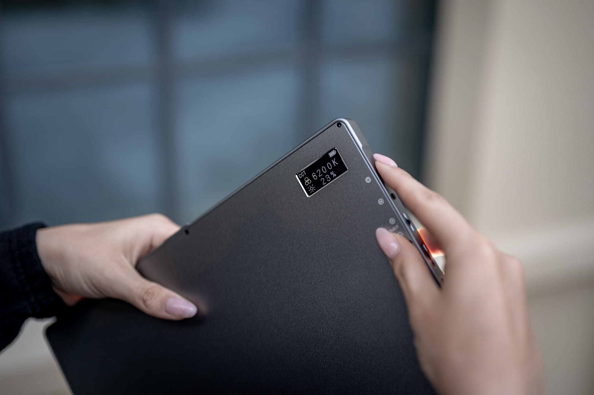 podświetlany ekran OLED umożliwiający wygodną kontrolę parametrów światła