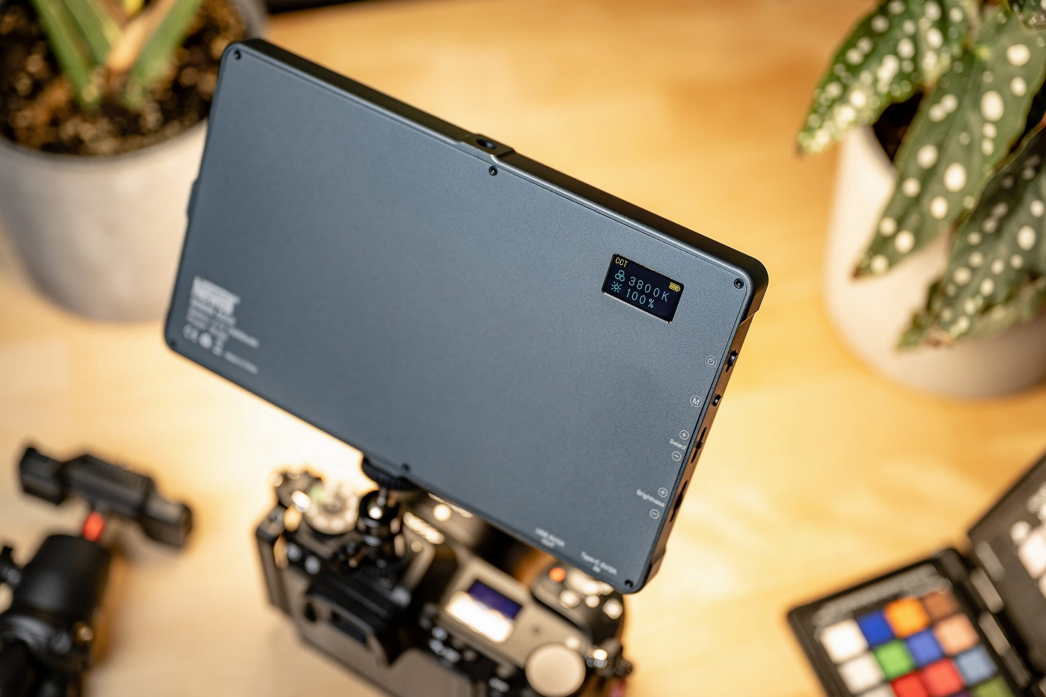 Lampa LED Newell RGB-W Rangha Max swoimi wymiarami przypomina niewielki tablet lub kieszonkowy kalendarz. Lekkość urządzenia i małe wymiary pozwolą zmieścić ją w niemal każdej torbie fotograficznej. Obudowa wykonana z lotniczego aluminium zapewni optymalną ochronę w każdych warunkach. Urządzenie oferuje też trzy gwinty ¼ cala. Dzięki nim z łatwością zainstalujesz lampę na statywie, klatce lub rigu, a także połączysz ją z dodatkowymi akcesoriami, takimi jak mikrofony, rejestratory dźwięku lub ekrany podglądowe.