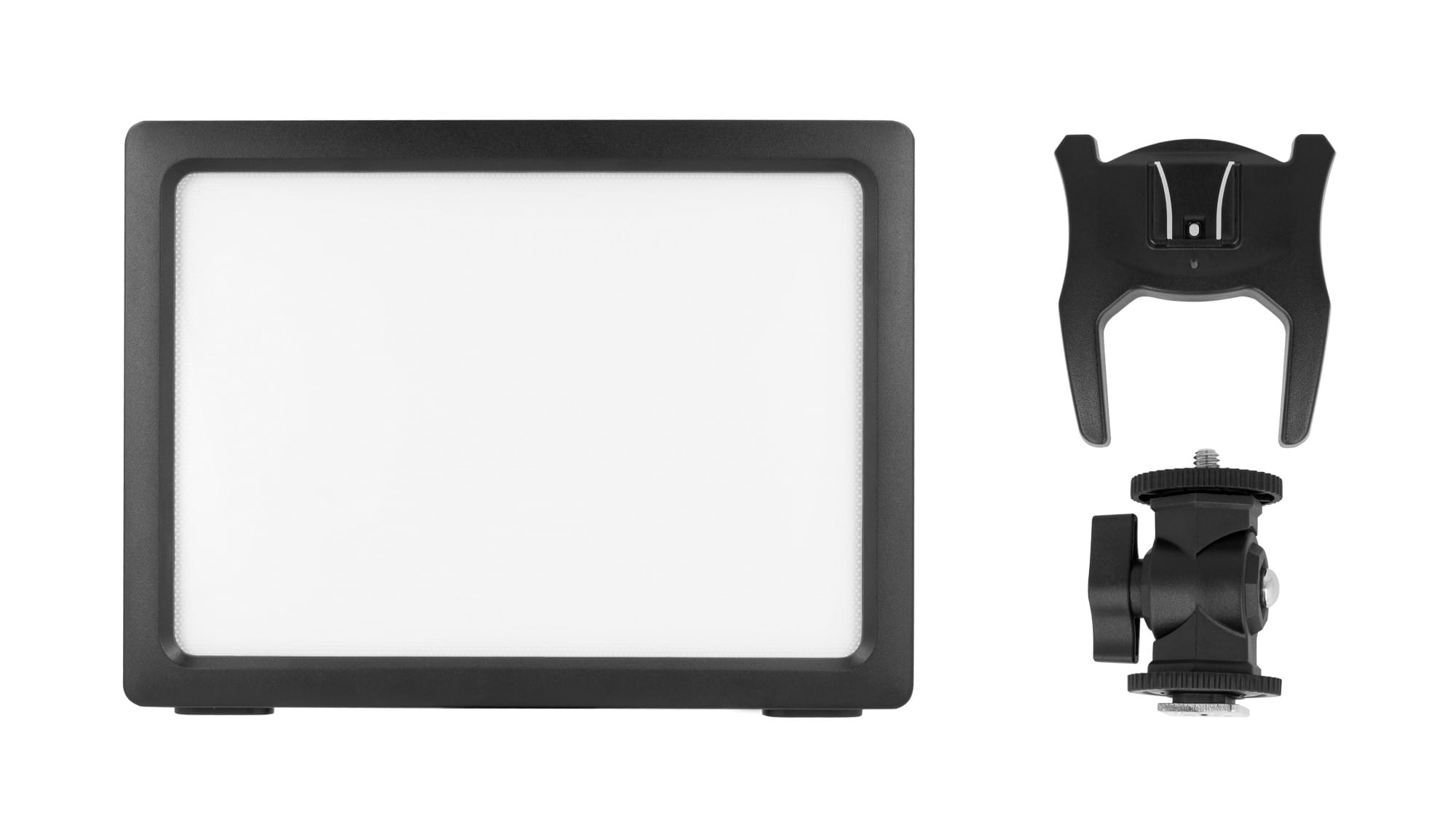 W zestawie znajduje się adapter montażowy wyposażony w zimną stopkę, dzięki któremu lampę można zamontować bezpośrednio na urządzeniu rejestrującym lub podstawce (także załączonej do zestawu). Wbudowany w adapter przegub pozwala na ustawienie panelu pod dogodnym kątem, a gwinty statywowe 1/4″ umieszczone zarówno w adapterze, jak i u podstawy lampy umożliwiają montaż na standardowym statywie fotograficznym i innych akcesoriach foto-video.