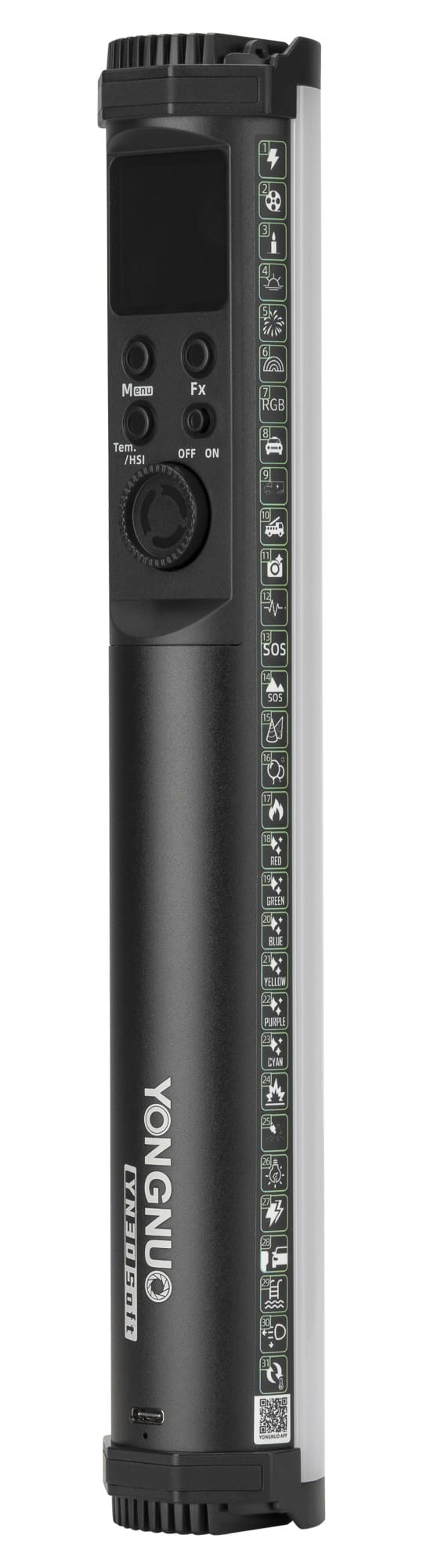 Yongnuo YN30 Soft - RGB, WB (2000 K - 10000 K) to wszechstronna lampa o charakterystycznym kształcie miecza. Urządzenie oferuje regulację mocy i temperatury barwowej oraz możliwość uzyskania 36 tysięcy różnych kolorów dostępnych w ramach przestrzeni barwnej HSI. Lampa świetnie sprawdzi się w fotografii produktowej, vlogach, transmisjach live oraz podczas malowania światłem. Twórcy video z pewnością docenią 31 predefiniowanych efektów specjalnych. Gwint 1/4" oraz mocne magnesy zapewnią wszechstronność montażu. Wsparcie aplikacji mobilnej Yongnuo (iOS/Android) umożliwi zdalne sterowanie oraz pracę w obrębie większego zestawu lamp.