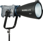 Nanlux Evoke 600C to pełnokolorowa, wszechstronna lampa LED do produkcji filmowej, telewizyjnej i treści w kanałach social. Pomimo kompaktowej formy, lampa posiada dużą moc wyjściową w obudowie magnezowej o stopniu ochrony IP66 i waży 7,26 kg. Działa przy napięciu 100–240 V AC lub 48 V DC (12,5 A), z opcjonalną stacją zasilającą dla akumulatorów V-mount.