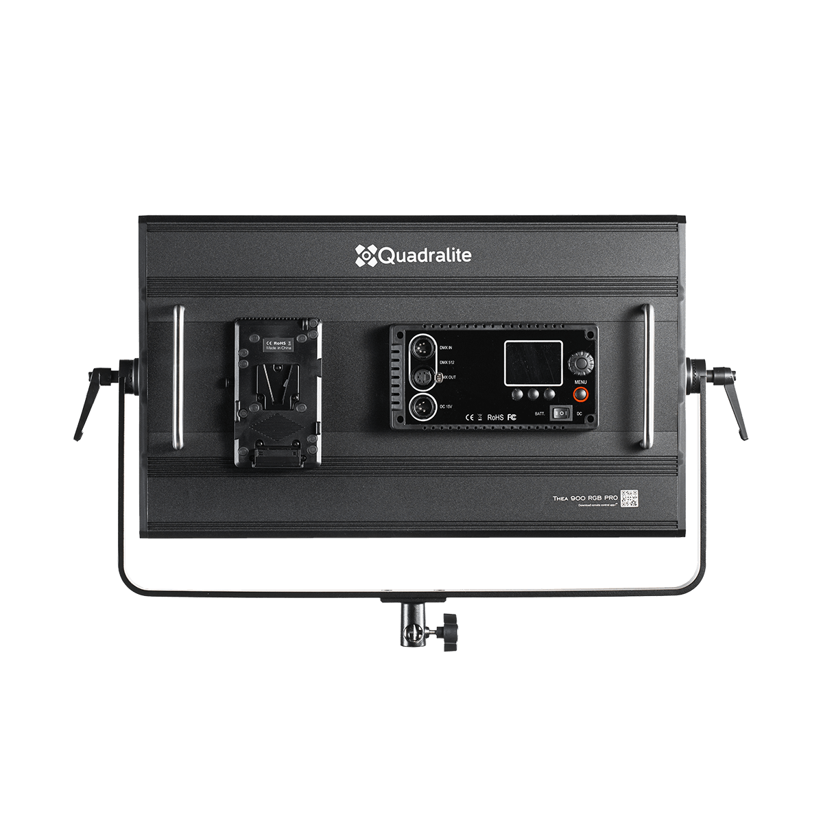 Thea RGB PRO to panel LED wyposażony w diody RGB. Znajdzie zastosowanie przy ujęciach efektowych, w programach rozrywkowych, do luminacji, podświetlenia tła lub danej części scenerii. Dzięki dedykowanej aplikacji Quadralite dla systemu Android oraz iOS lampa oraz grupa lamp mogą być sterowane zdalnie, aplikacja pozwala na zmianę temperatury barwowej, luminacji, koloru światła oraz trybu efektowego.