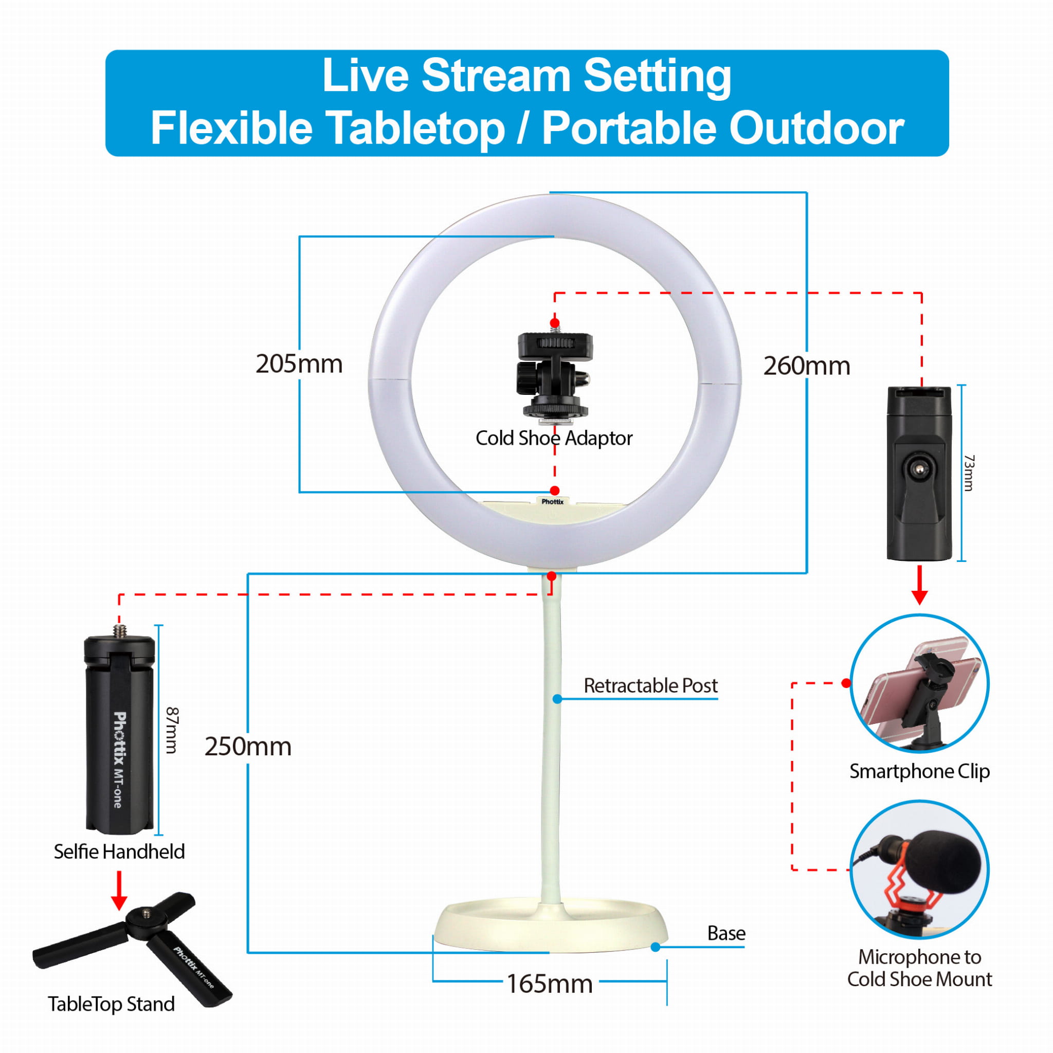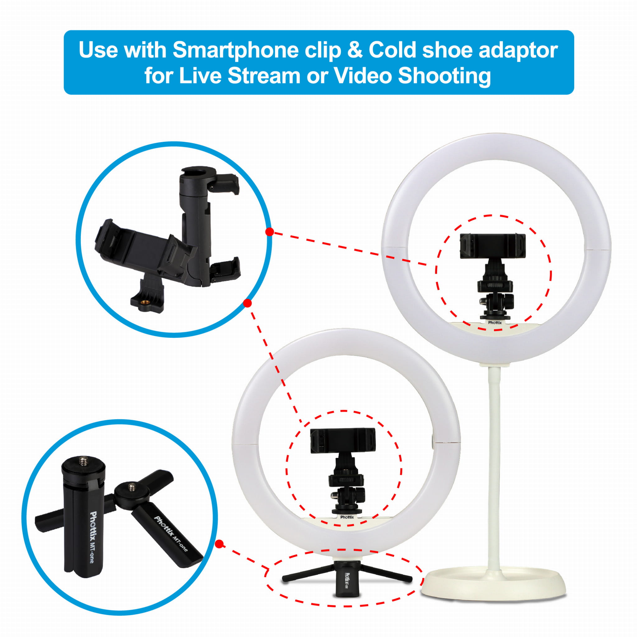 Phottix Nuada Ring 10 LED to kompaktowa lampa pierścieniowa o średnicy 10 cali, idealna do vlogowania, selfie, transmisji na żywo oraz makijażu. Oferuje regulację jasności, temperatury barwowej i zasilanie z portu USB, co czyni ją wygodnym rozwiązaniem do pracy w domu i w terenie.