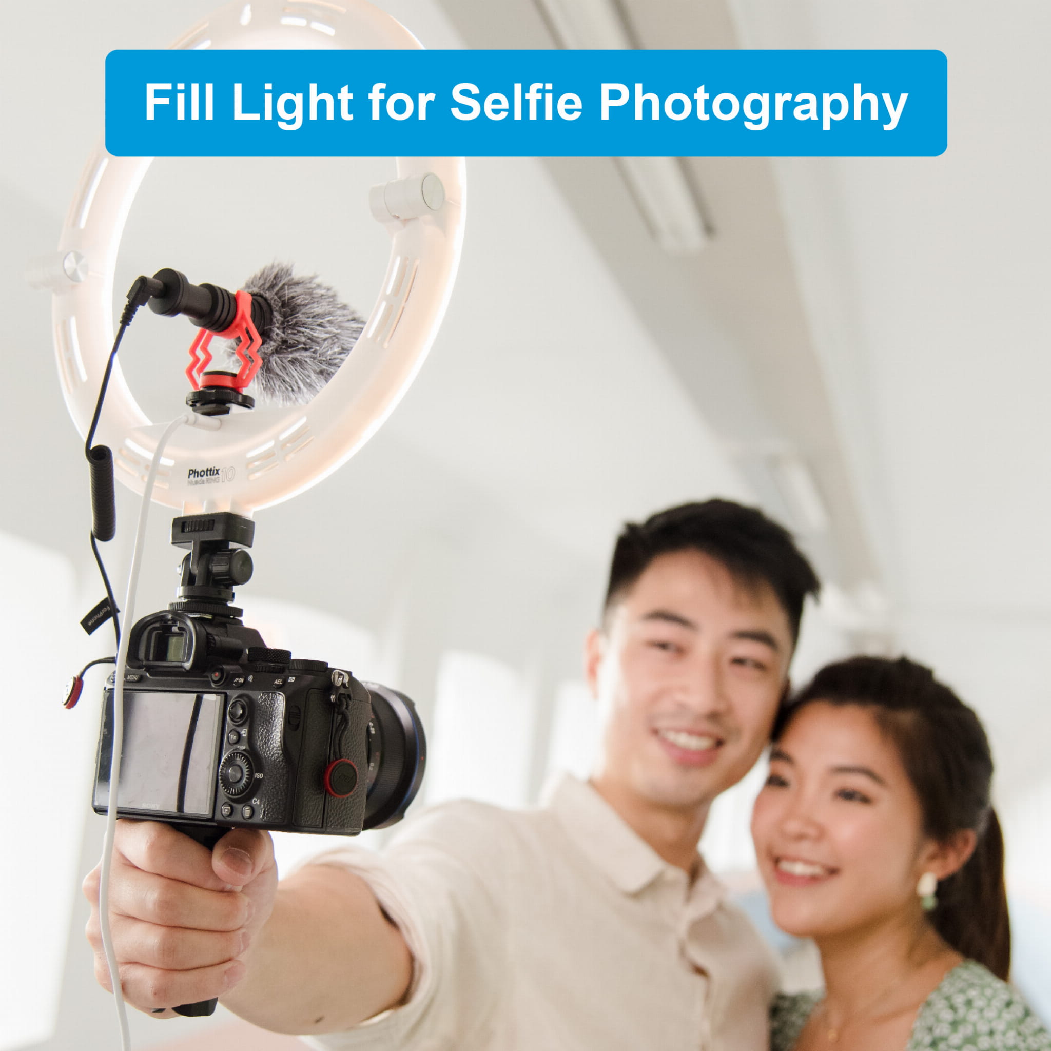 Phottix Nuada Ring 10 LED to przenośna lampa pierścieniowa o średnicy 10 cali (25 cm), zaprojektowana z myślą o vlogerach, twórcach internetowych, osobach prowadzących transmisje na żywo, a także wizażystach. Zapewnia miękkie, równomierne i atrakcyjne światło, idealne do oświetlania twarzy podczas nagrań, wideokonferencji, fotografii beauty oraz makijażu.