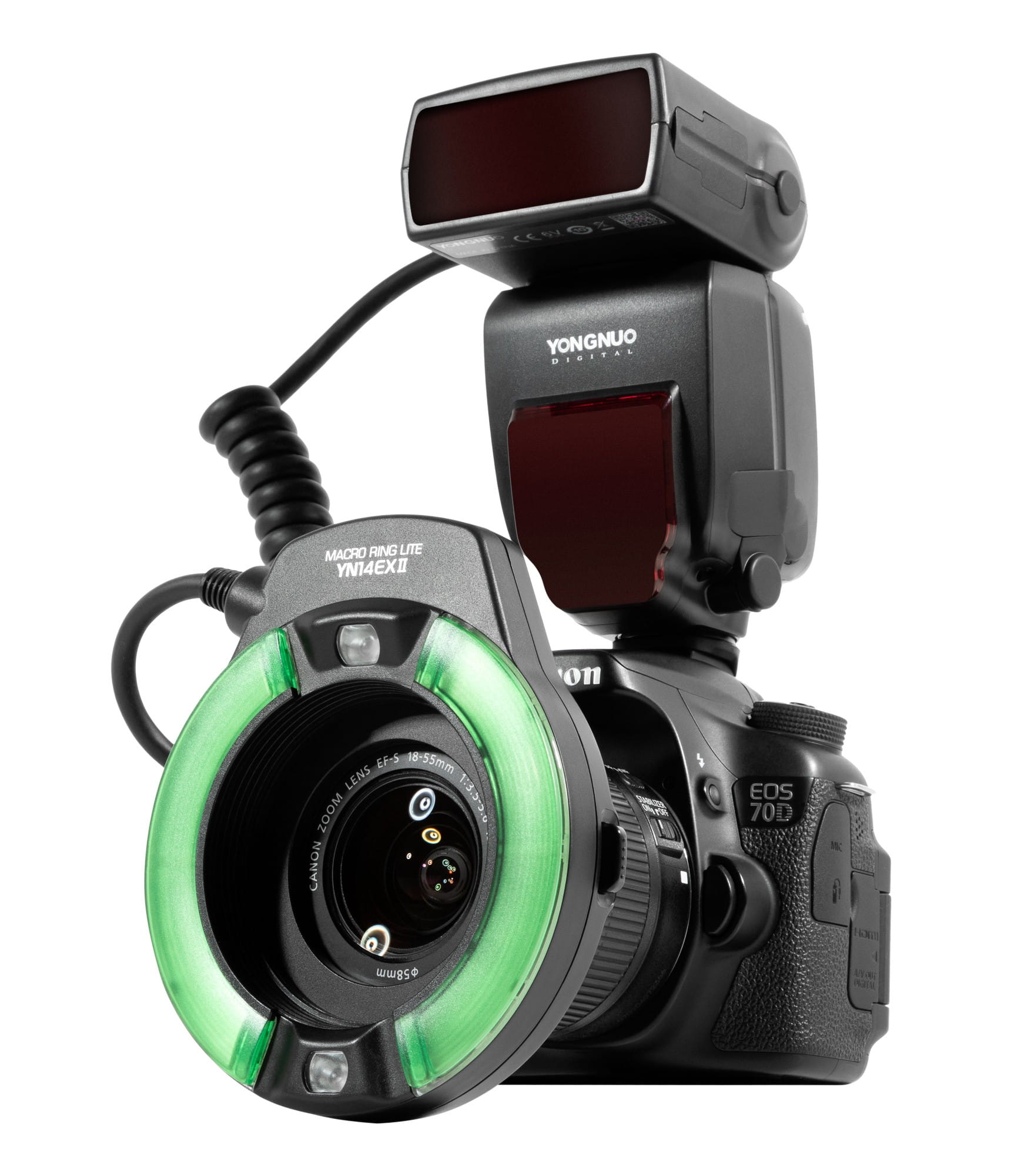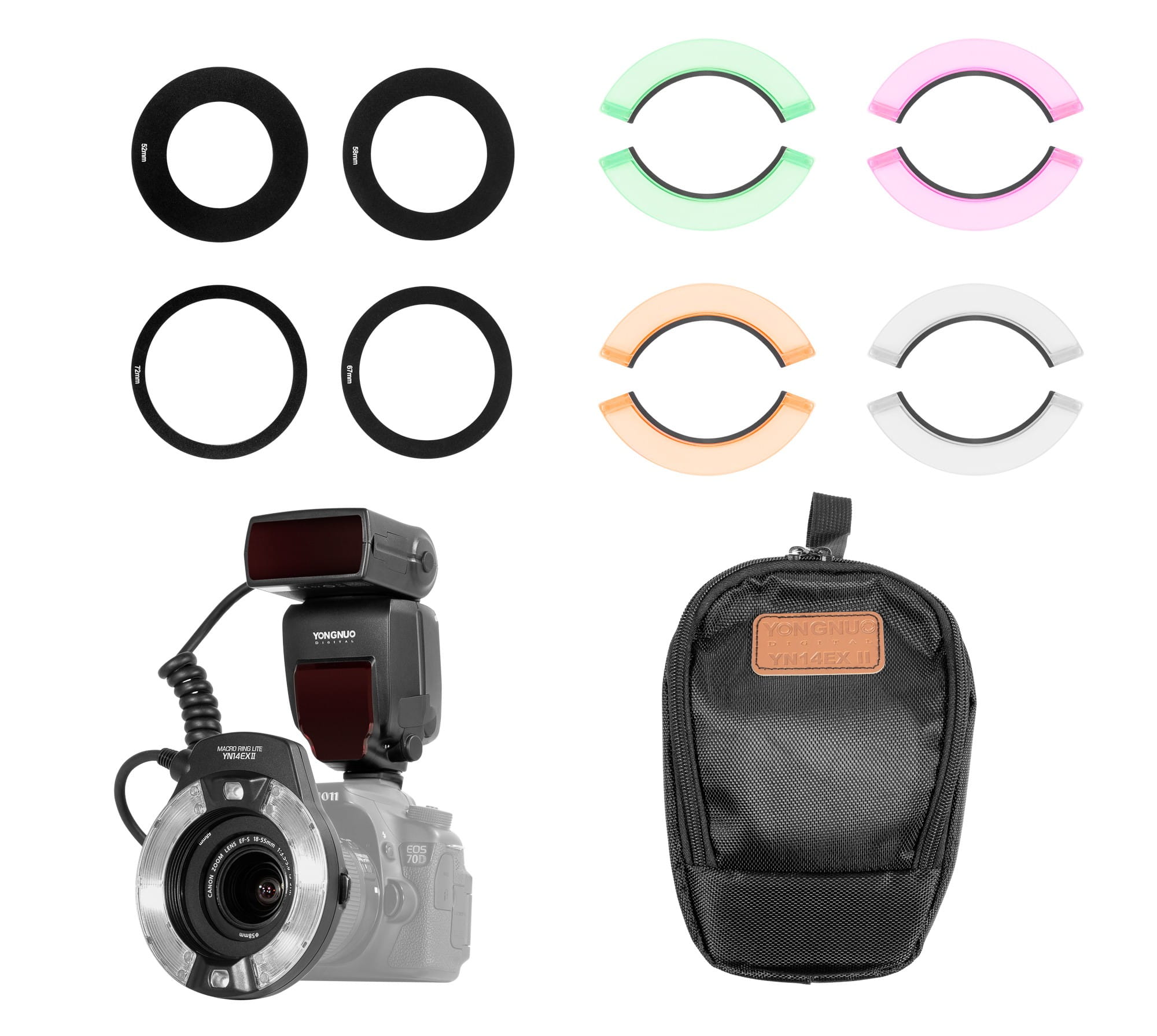 Zastosowany w YN14EX II pierścieniowy palnik zaprojektowany został z myślą o miłośnikach makrofotografii, ale idealnie sprawdza się także w fotografii portretowej. Jego charakterystyczny kształt pozwala uzyskać piękne odbicia w oczach fotografowanej osoby. Cztery zestawy magnetycznie przyklejanych do palnika dyfuzorów pozwalają zmienić charakter oraz temperaturę barwową generowanego światła.