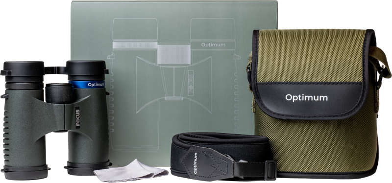 Lornetka Focus Optimum jest dostarczana wraz z wygodnym paskiem, futerałem ochronnym i ściereczką do czyszczenia.