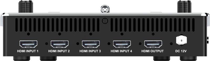 Gdy switcher jest podłączony do zewnętrznego ekranu dodatkowego, może wyświetlać podgląd z monitoringu w czasie rzeczywistym na 6 obrazach, w tym z PGM, PST i czterech kanałów wejścia sygnału HDMI, oraz wyświetlać kolumnę dźwiękową. Ponadto możesz skonfigurować dziewięć układów w trybie PIP (Picture in Picture) Jest to bardzo przydatne w przypadku wielostanowiskowej produkcji terenowej na dużą skalę.