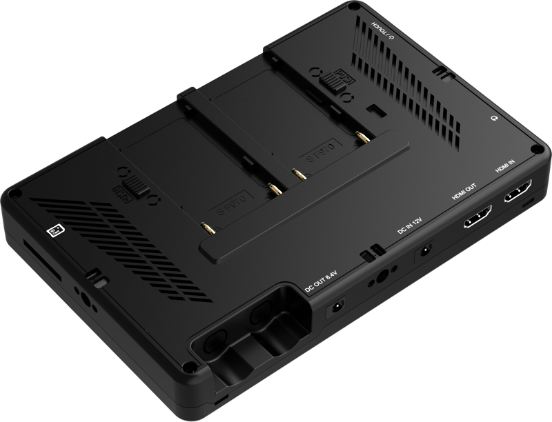 Z przodu znajduje się duży ekran dotykowy LCD o wysokiej rozdzielczości, czytelny w świetle dziennym, złącza wideo na dole i gniazdo kart SD z boku oraz miejsce na dwie baterie NP-F z tyłu. Rama zewnętrzna ma standardowe punkty mocowania ¼ "na dole, po lewej i prawej stronie do mocowania go do kamer i platform. Ten szczegół konstrukcyjny sprawia, że LUT7 jest łatwy do przymocowania do kamery i łatwy do udostępnienia członkowi zespołu lub klientowi na planie.