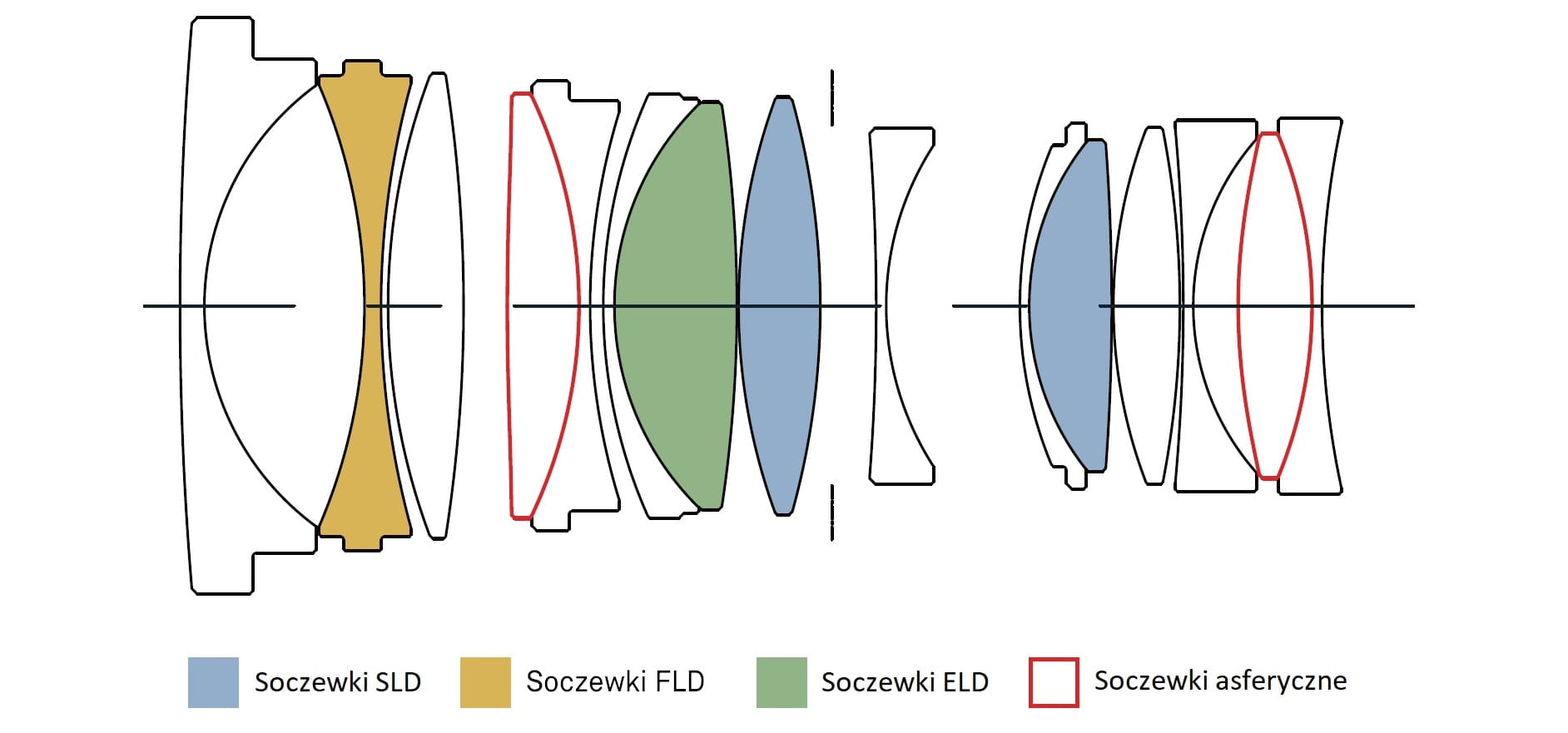 Zaawansowany układ soczewek, wykonanych ze specjalnych szkieł FLD, SLD oraz elementów asferycznych, w połączeniu z 11-listkową, zaokrągloną przysłoną, gwarantuje doskonałą ostrość i naturalny efekt bokeh. Obiektyw rejestruje wyrazisty, kremowy bokeh oraz równomierną ostrość od centrum do krawędzi kadru, co czyni go idealnym wyborem przy współpracy z wielomilionowymi matrycami pełnoklatkowymi.