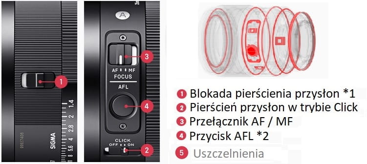 Na obudowie znajduje się również przełącznik trybów ostrości oraz przycisk AFL, który pozwala przypisać dowolne funkcje z menu aparatu. Dzięki tym rozwiązaniom, obiektyw oferuje ergonomiczną obsługę, umożliwiającą pełną kontrolę nad ustawieniami w każdej sytuacji.