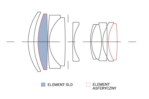 jeden elementy SLD (o niskiej dyspersji) co zapewnia idealną korekcję wszelkiego rodzaju aberracji. Obiektyw zapewnia ostre i kontrastowe zdjęcia nawet na maksymalnie otwartej przysłonie F1.4.