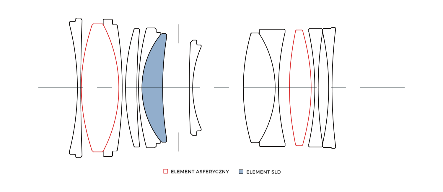 | Konstrukcja obiektywu | 12 elementów w 9 grupach |
