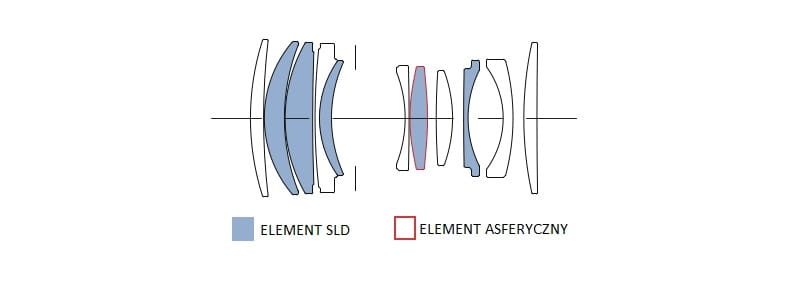 | Konstrukcja obiektywu | 11 elementów w 10 grupach |