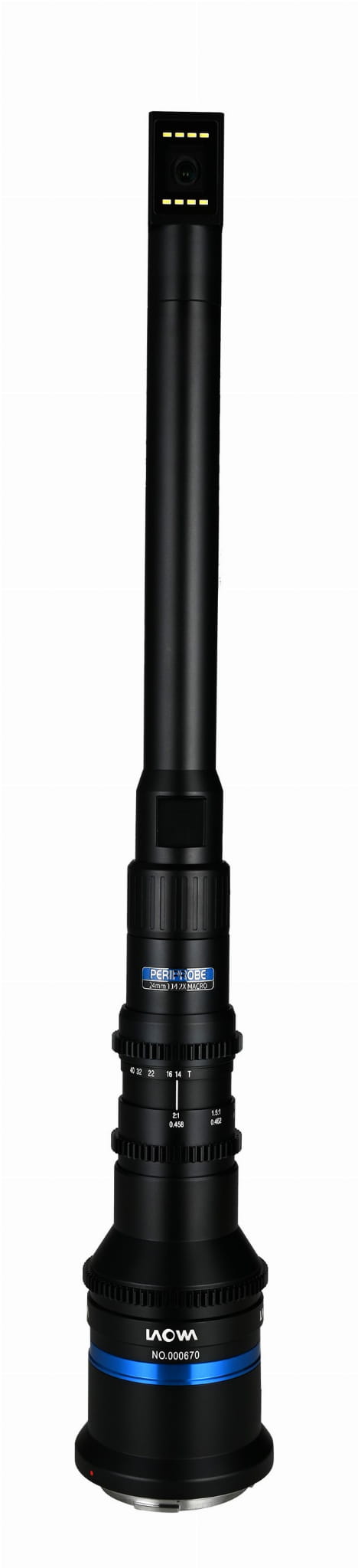 Venus Optics Laowa Periprobe Cine 24 mm f/14 Macro 2:1 to unikalny obiektyw, który otworzy przed Tobą zupełnie nowe możliwości filmowania i fotografowania w skali makro. Niespotykany kształt i dwukrotne przybliżenie pozwolą zanurzyć się w świecie małych owadów, zwierząt i roślin. Z Periprobe odkryjesz też nowe sposoby na zdjęcia produktowe i zrewolucjonizujesz schematy pracy w studiu. Oryginalna konstrukcja pozwali spojrzeć na świat z bliska – nie tylko w tradycyjny sposób, ale także pod kątem 90º, zupełnie jak za pomocą peryskopu! Wbudowane diody LED zapewnią odpowiednie światło wszędzie tam, gdzie nie zmieści się tradycyjna lampa. Filmowcy z pewnością docenią zębatki kompatybilne z systemami follow focus. W zestawie nie zabrakło profesjonalnej walizki zabezpieczonej zamkami szyfrowymi.