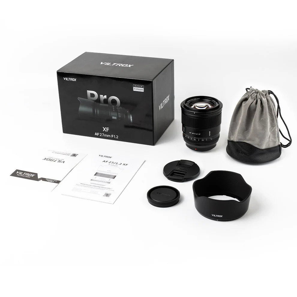 Zawartość zestawu Viltrox AF 27mm f/1.2 XF PRO (Fujifilm X)