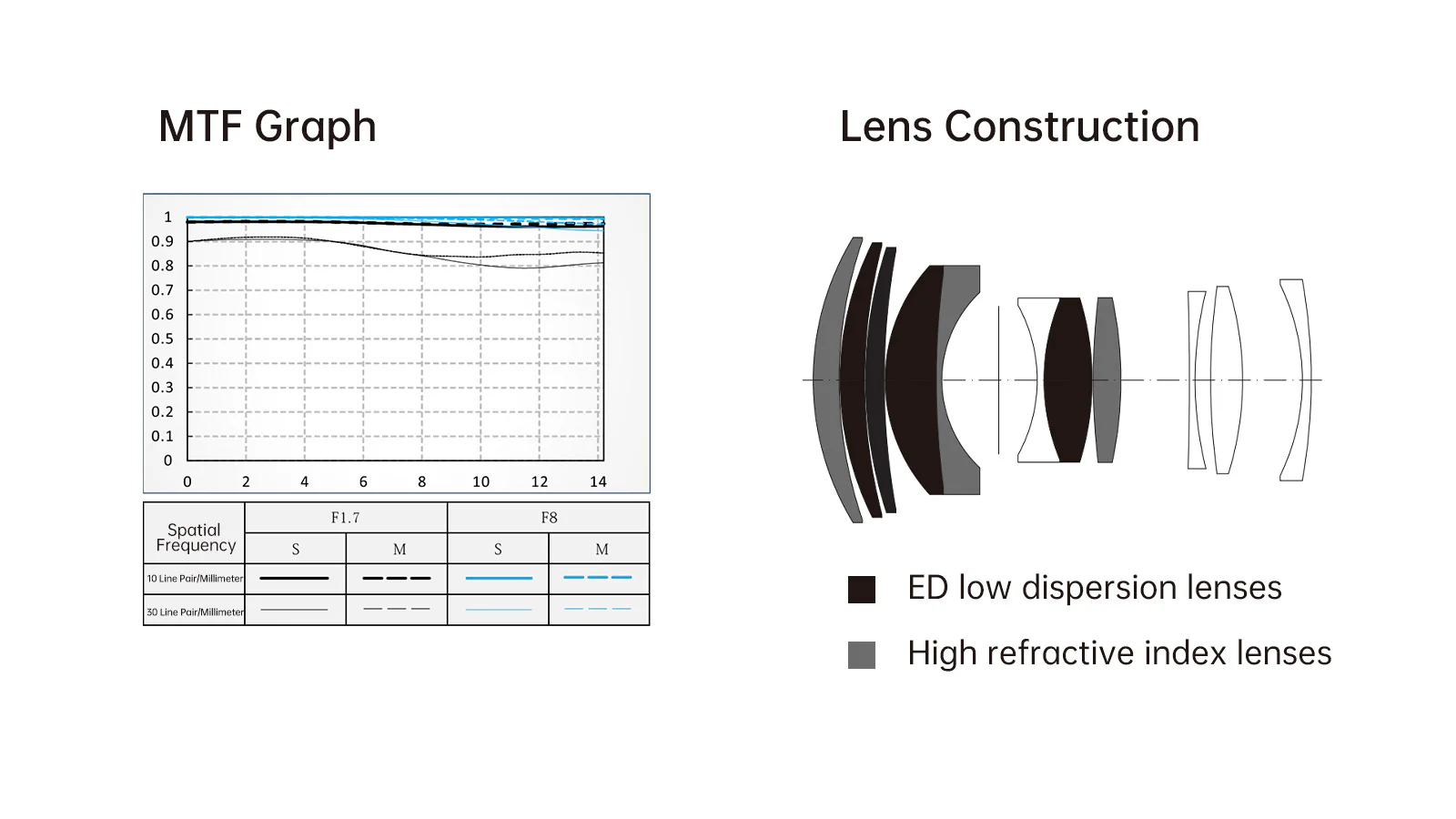 Zaawansowana wydajność optyczna: Konstrukcja optyczna składa się z 11 elementów w 9 grupach, w tym 4 soczewek ED (o bardzo niskiej dyspersji) oraz 3 soczewek o wysokim współczynniku załamania światła. Dzięki temu uzyskuje się ostre i klarowne obrazy z pięknym bokeh.