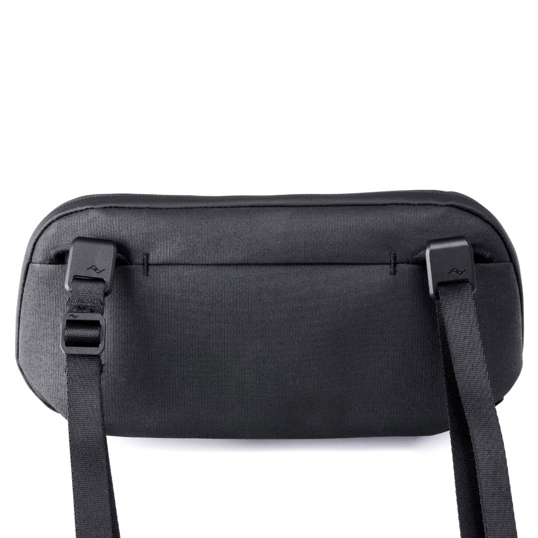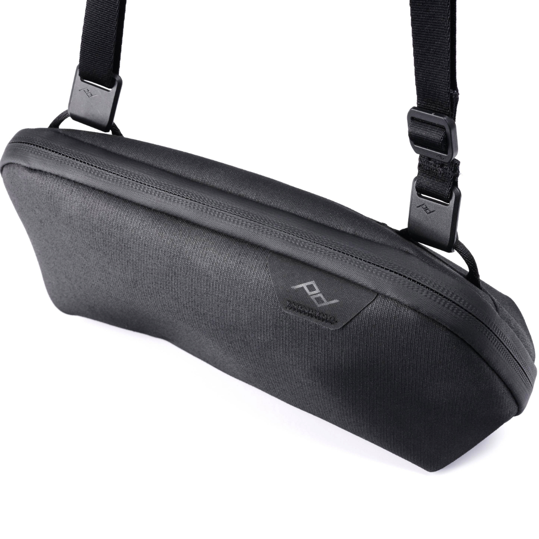 Small Tech Pouch otwiera się szeroko, co zapewnia pełną widoczność i łatwy dostęp do zawartości. Dzięki zewnętrznemu uchwytowi i narożnym zakładkom, etui łatwo wyciągnąć nawet z ciasnych przestrzeni. Dwie pętle Cord Hook™ umożliwiają podłączenie dowolnego paska do aparatu Peak Design, aby przekształcić wkład w torbę na ramię.