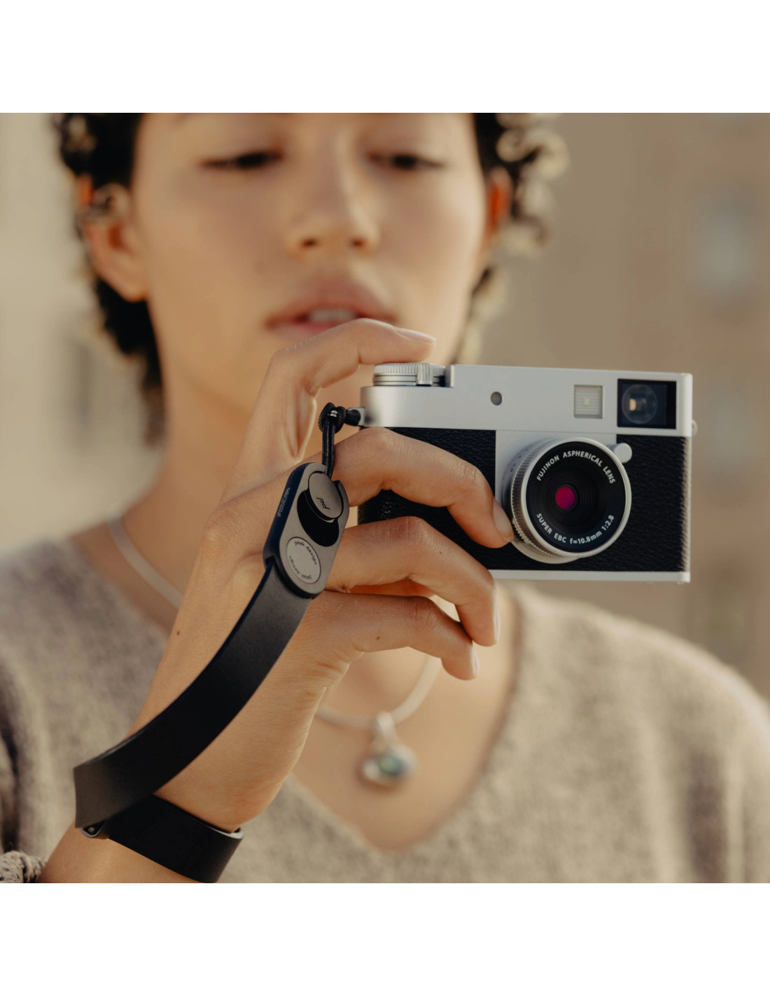 Cuff Leather to wyjątkowo lekki, minimalistyczny pasek na nadgarstek. Doskonale sprawdzi się jako zabezpieczenie aparatu przed wypadnięciem z ręki, ułatwi trzymanie, a w razie potrzeby można go błyskawicznie odpiąć – dosłownie jednym palcem.