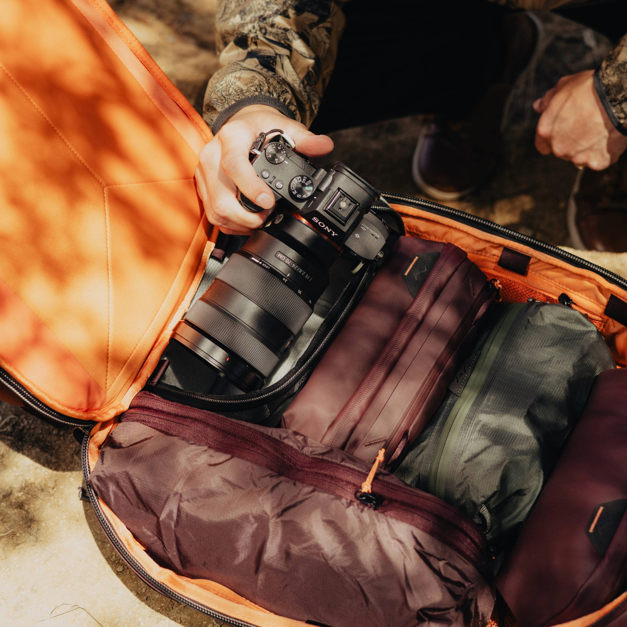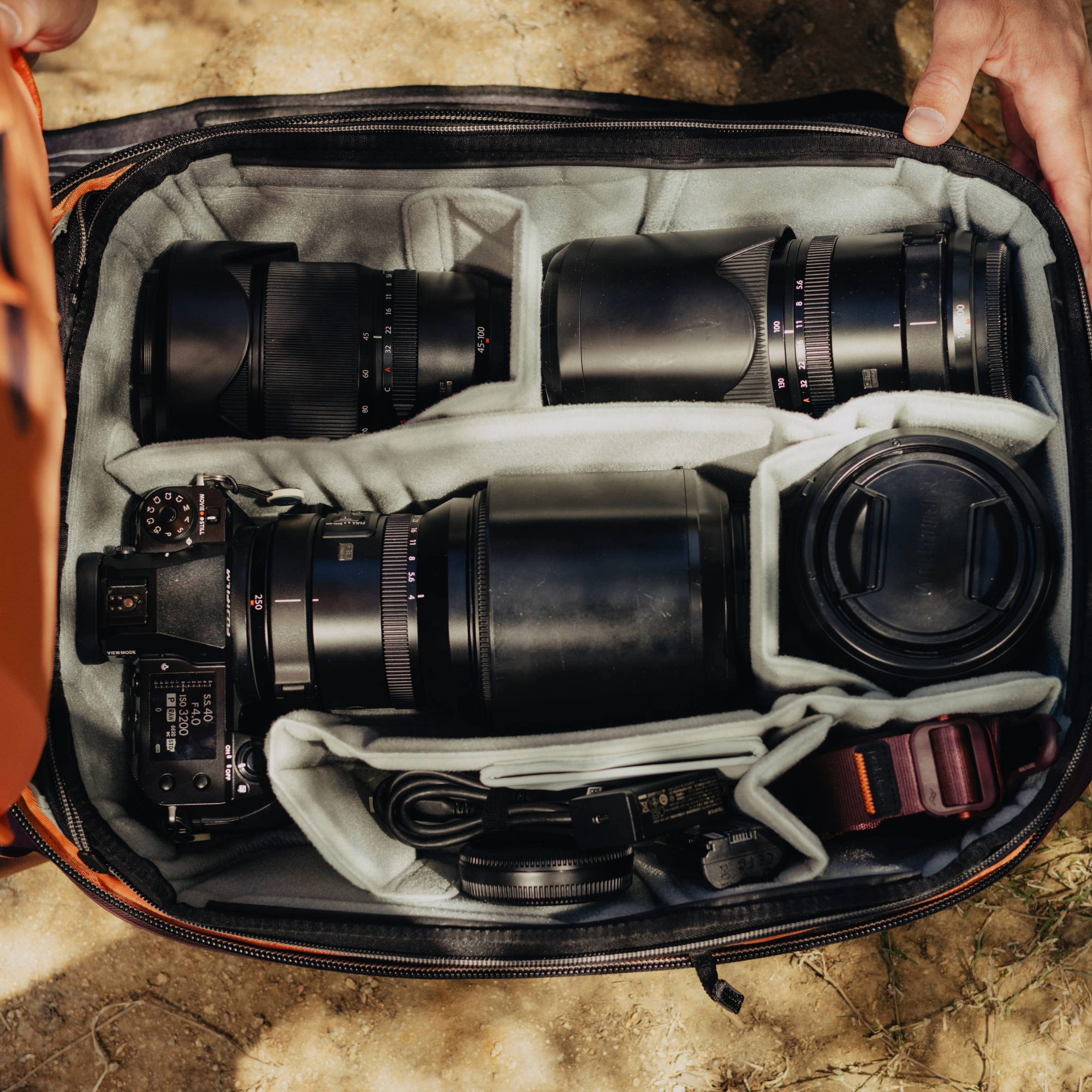 - możliwość zamocowania w środku wkładów Camera Cube (sprzedawane oddzielnie), które ułatwiają organizację i dostęp do aparatu, kamery lub drona,