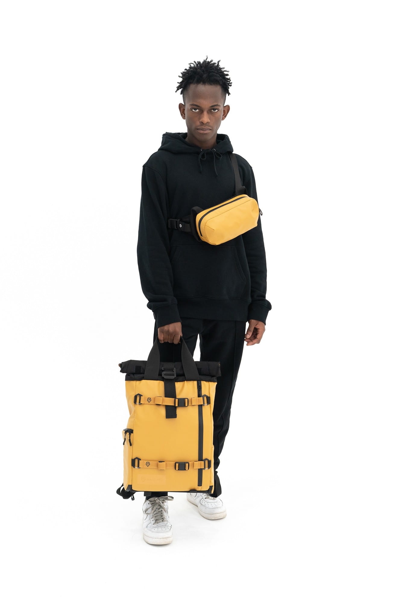 Prvke 11 Lite w wyjątkowym żółtym kolorze to starannie zaprojektowane połączenie designerskiej torby i funkcjonalnego plecaka z wyjątkowymi możliwościami personalizacji, zapewniające wygodne przechowywanie Twojego ekwipunku. Wysoka jakość wykonania oraz dopracowana modułowa konstrukcja pozwolą idealnie dopasować się do Twoich potrzeb, a także bezpiecznie transportować i przechowywać Twój sprzęt elektroniczny, ubrania oraz niezbędne akcesoria. Nieważne czy wybierasz się do pracy, jedziesz robić zdjęcia, odwiedzasz siłownię lub spotykasz się ze znajomymi – unikalny żółty plecak z serii Prvke odnajdzie się w każdym miejscu. W sprzedaży również czarna, liliowa i pomarańczowa wersja kolorystyczna.