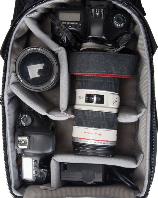 | Pojemność | 2 x DSLR, 4 x obiektyw, lampa, grip, tablet/laptop |