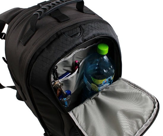 Na boku znajdują się specjalne uchwyty przeznaczone do przenoszenia statywu lub dodatkowych akcesoriów. Oddychający materiał na ściance przylegającej do pleców zapewnia wentylację podczas noszenia. Na górze plecaka znajduje się otwór na słuchawki. Daje to możliwość słuchania muzyki nawet w ekstremalnych warunkach pogodowych bez obawy o zamoczenie sprzętu. W komplecie znajduje się chowany pokrowiec przeciwdeszczowy, który dodatkowo chroni sprzęt przed wpływami czynników atmosferycznych.