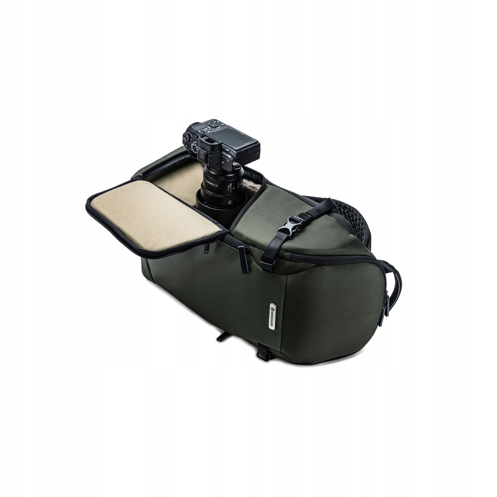 VEO SELECT 46 BRto plecak zmieniający się bez wysiłku z pełnego plecaka otwieranego od tyłu w plecak z dostępem dla osób prawo- lub leworęcznych. Skorzystaj z łatwego dostępu od góry do aparatu z dłuższym obiektywem, gdy pracujesz z pełną konfiguracją sprzętu. Smukły, opływowy wygląd jest połączony z wytrzymałą ochroną, a plecak z łatwością zabezpieczy lustrzankę cyfrową z zamocowanym obiektywem, 3-5 dodatkowych obiektywów (do 70-200 mm f/2,8), lampę błyskową i akcesoria. Początkowy układ przegródek jest skonfigurowany jako plecak na co dzień, z dostępem do górnej trzeciej części przez zapinany na zamek otwór. Jednak przegrody można łatwo skonfigurować w celu pełnego wykorzystania sprzętu i wygodnego dostępu od góry dla aparatu z zamocowanym teleobiektywem.