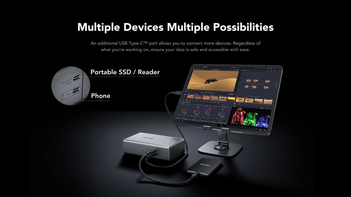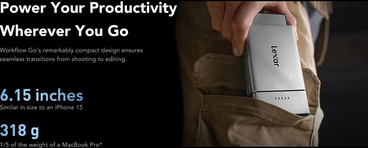 Lexar Professional Workflow Go to kompaktowa, przenośna stacja dokująca z dwoma zatokami modułowymi, zaprojektowana z myślą o profesjonalistach potrzebujących elastycznego i wydajnego rozwiązania do zarządzania danymi w terenie. Dzięki modułowej konstrukcji umożliwia dostosowanie konfiguracji poprzez dodanie czytników kart pamięci lub przenośnych dysków SSD z serii Lexar Professional Workflow, co pozwala na optymalizację przepływu pracy zgodnie z indywidualnymi potrzebami.