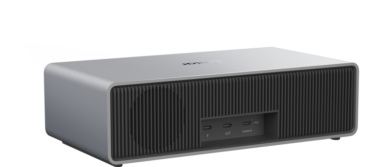 Dodatkowo, stacja wyposażona jest w porty USB-C i USB-A, umożliwiające podłączenie dodatkowych urządzeń peryferyjnych. W zestawie znajduje się również ładowarka o mocy 140 W z wymiennymi wtyczkami, zapewniająca odpowiednie zasilanie stacji dokującej i podłączonych urządzeń.
