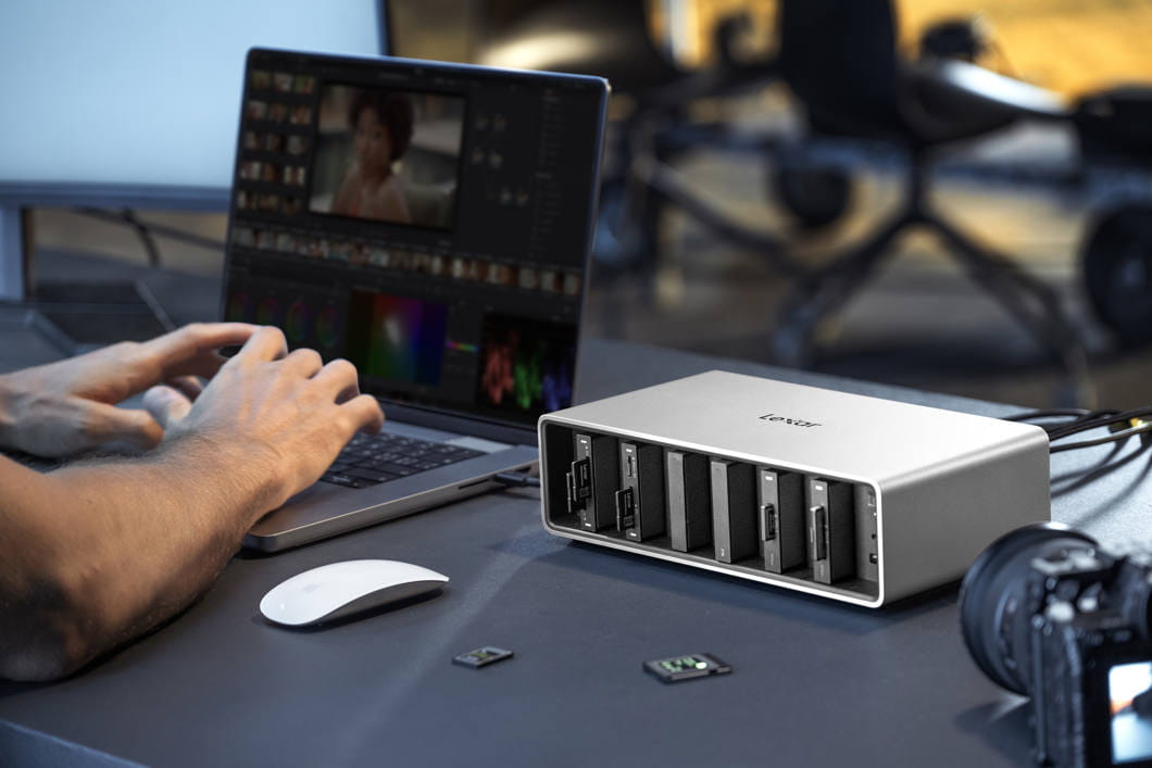 Stacja dokująca Lexar Professional Workflow oferuje sześć zatok modułowych, które można dostosować za pomocą czytników kart i przenośnych dysków SSD, umożliwiając jednoczesne korzystanie ze wszystkich sześciu zatok. Dzięki interfejsowi Thunderbolt 4 zapewnia prędkości transferu danych do 40 Gb/s, co pozwala na szybkie i efektywne przesyłanie plików oraz obsługę monitorów o rozdzielczości do 8K. Obudowa wykonana z aluminium zapewnia doskonałe odprowadzanie ciepła oraz odporność na zarysowania, a wbudowany wentylator oraz kanały przepływu powietrza utrzymują optymalną temperaturę pracy urządzenia.
