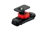 Dzięki elastycznemu paskowi montażowemu uchwyt można łatwo dopasować do różnych typów kasków, a przegub kulowy (ball & socket joint) umożliwia precyzyjną regulację kąta nagrywania. Standardowy gwint 1/4"-20 zapewnia stabilne i pewne mocowanie kamery.