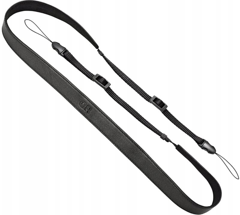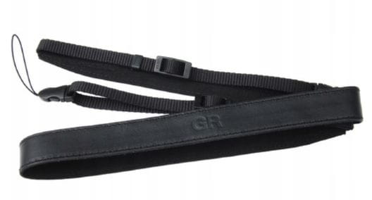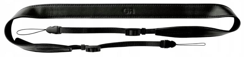 Oryginalny skórzany pasek do aparatu z serii GR na szyję z dwupunktowym uchwytem. Fotografowie docenią wykonanie z prawdziwej skóry i wytłoczone logo GR. Aby zainstalować pasek, wystarczy przewlec pętle szybkiego zwalniania paska przez uchwyty paska aparatu.