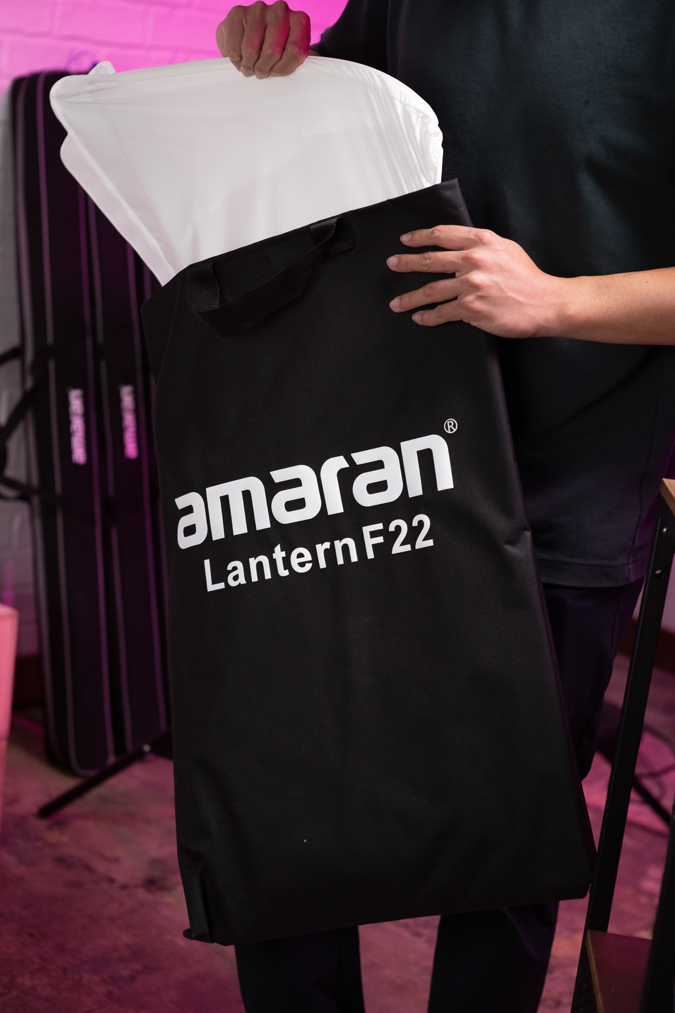 Lampionowa konstrukcja softboxa Amaran Lantern F22 pozwala skutecznie wypełnić plan równomiernym, miękkim światłem. Świetnie sprawdzi się przy transmisjach na żywo, fotografowaniu w trudnych warunkach oświetleniowych czy w projektach, gdzie kluczowe jest naturalne i równomierne wypełnienie kadru. Rozłożenie softboxa Amaran Lantern F22 zajmuje zaledwie kilka chwil, więc zawsze możesz liczyć na szybkie i skuteczne działanie.