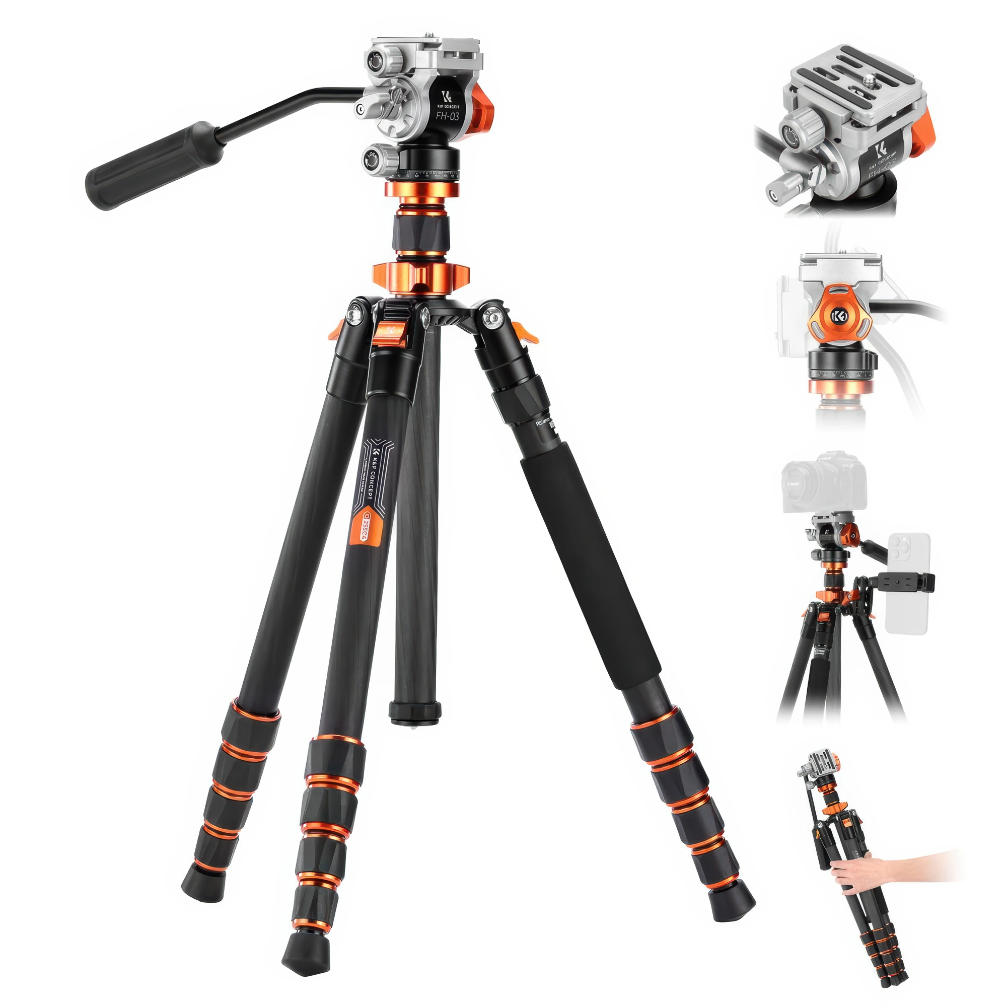 - statyw video K&F Concept O255C4 z głowicą FH-03