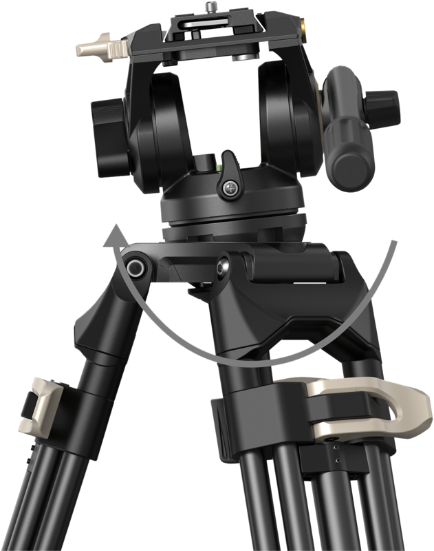Głowica statywu umożliwia precyzyjne ruchy panoramiczne w zakresie 360° oraz pochylanie w zakresie od -75° do +90°. Dzięki technologii fluidowej gwarantuje wyjątkową płynność ruchów, co czyni ją idealną do dynamicznych ujęć wideo i precyzyjnych ustawień w fotografii. Głowica jest wyposażona w szybkozłączkę kompatybilną z płytkami w standardzie Manfrotto 501PL, co pozwala na szybki montaż i demontaż sprzętu, przyspieszając workflow na planie zdjęciowym.