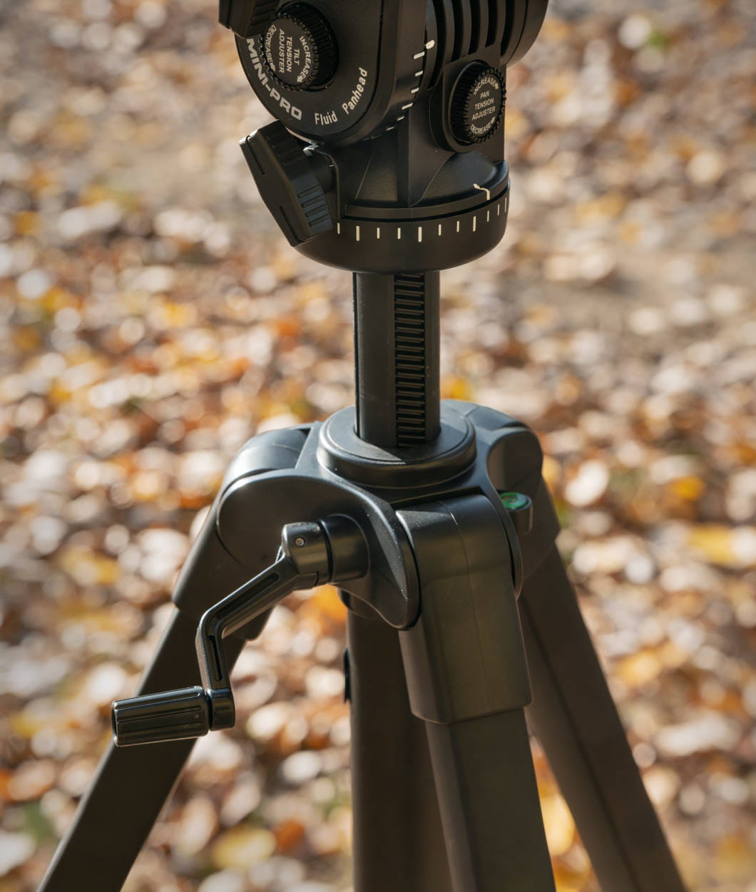 - Płynna głowica wideo: Statyw wyposażony jest w 2-kierunkową głowicę wideo PH-368, która zapewnia płynne ruchy w pionie i poziomie, co jest szczególnie istotne podczas nagrywania filmów.